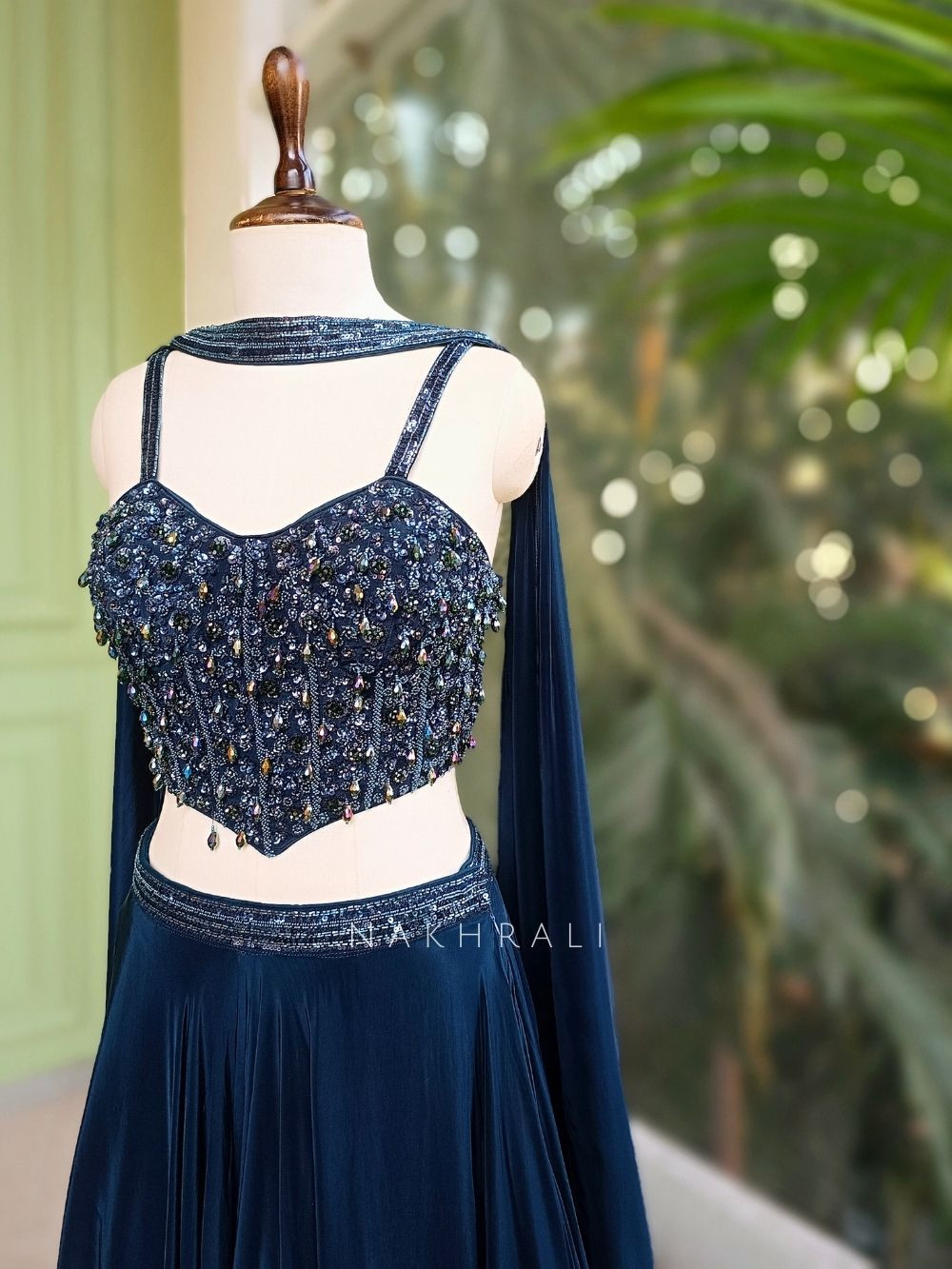 Meadow Navy Blue Lehenga Set with Beads and Sequin Work