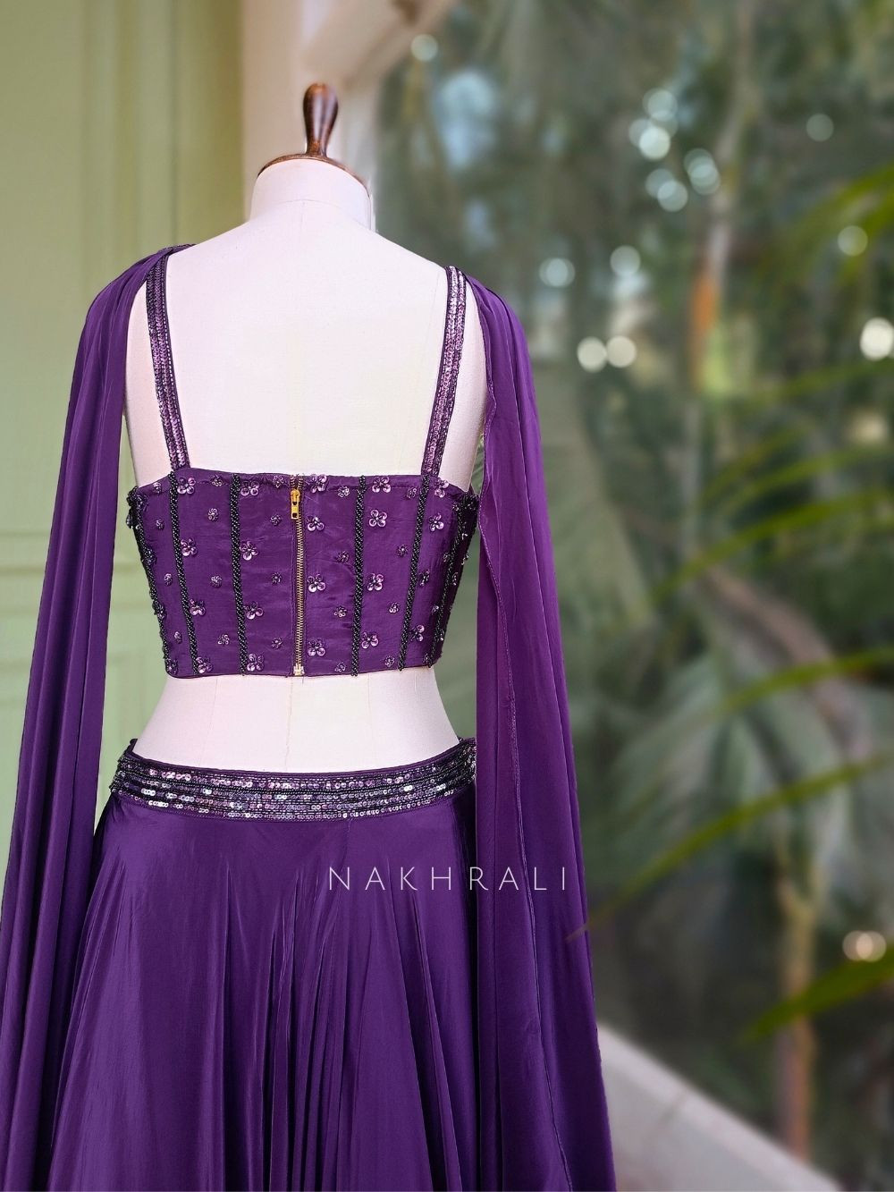 Meadow Purple Lehenga Set with Beads and Sequin Work