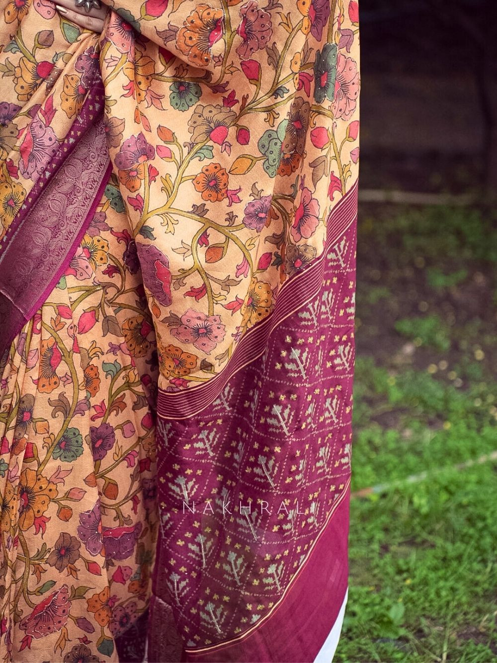Mehek Mustard Floral Saree with Subtle Zari Detailing