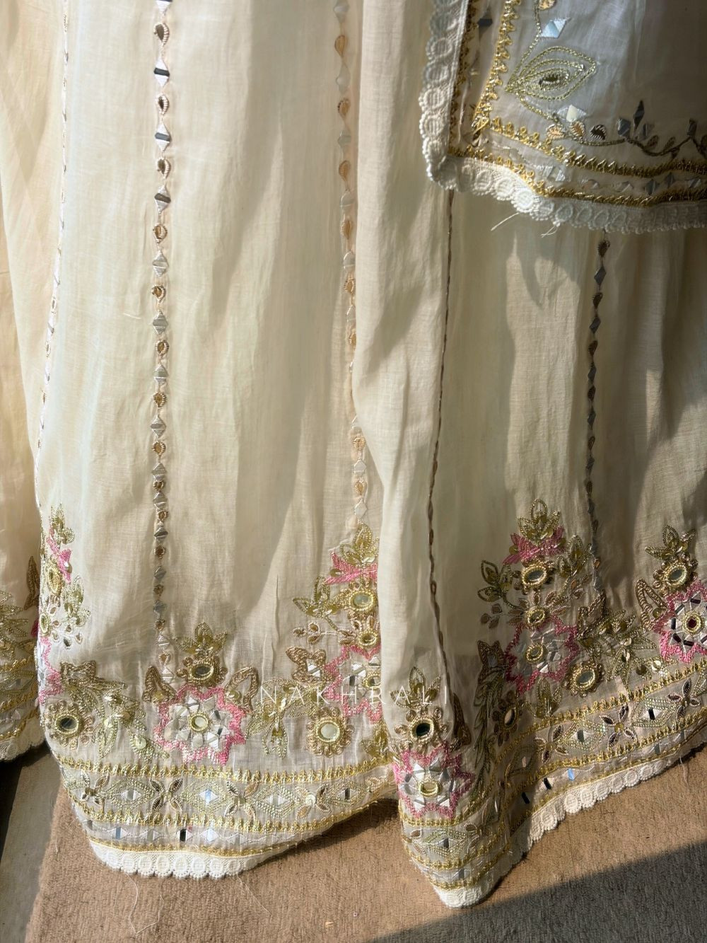 Meira Cream Anarkali Set with Mirror and Embroidery Work