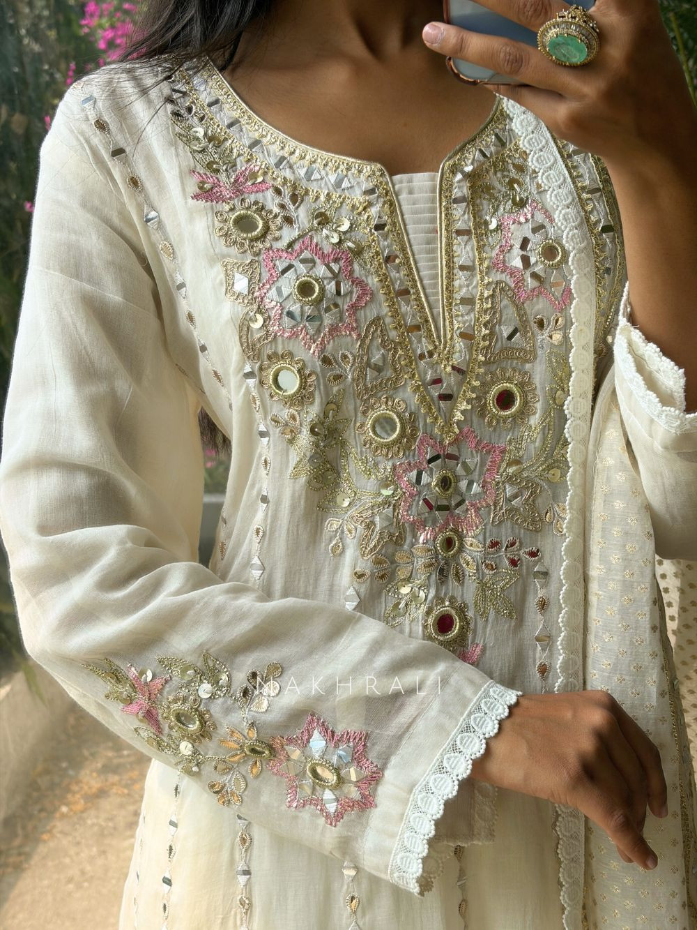 • Festive Celebrations: Pair with statement earrings and embellished heels to highlight the mirror work.