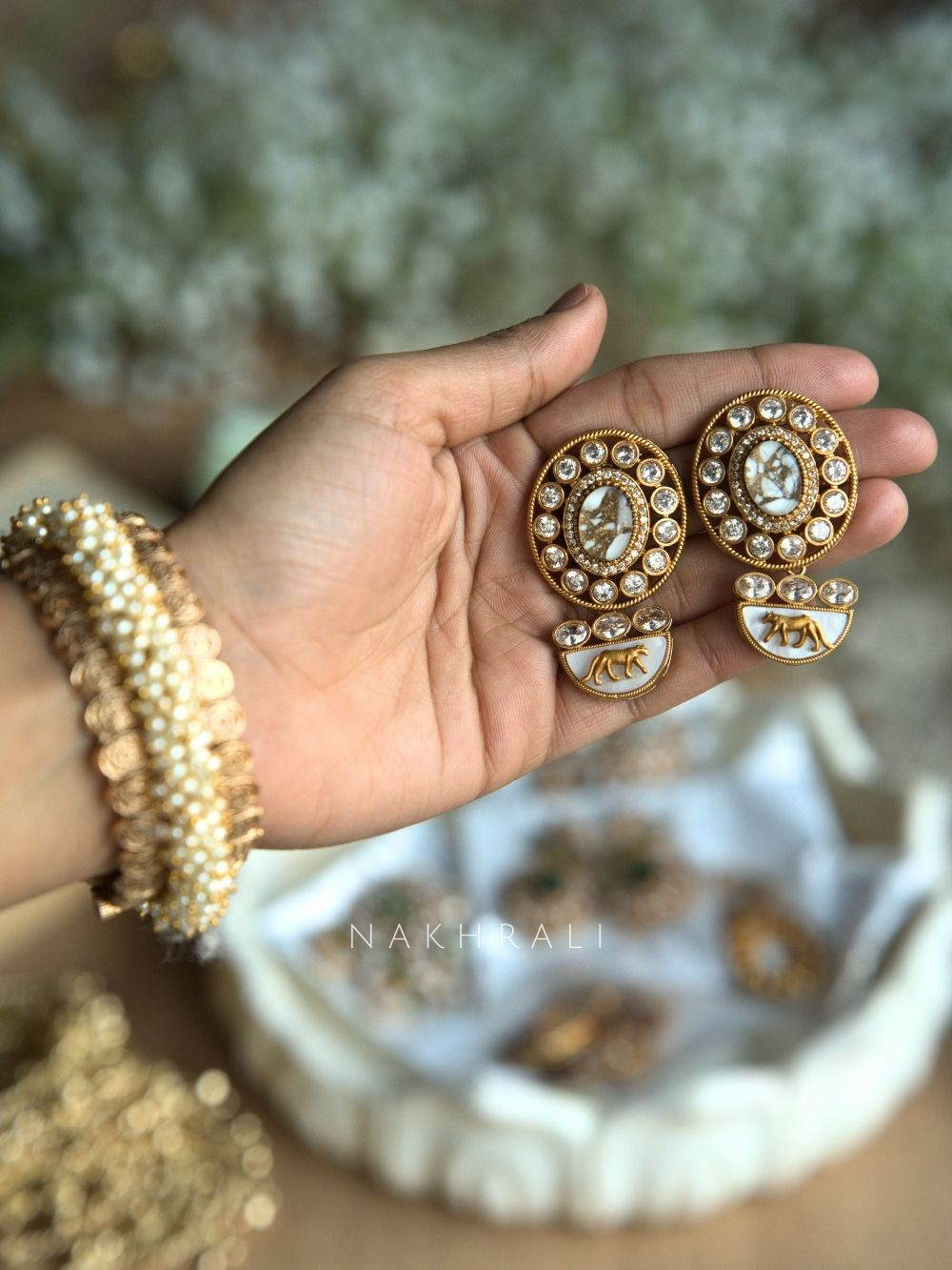 The regal heirloom-worthy earrings are made to match the persona of every muse. Whether you team it with Indowestern or traditional Indian outfit it us sure to grab a some loads of limelight. The finesse of artisan's carefully crafted piece is all you need this festive and wedding season.