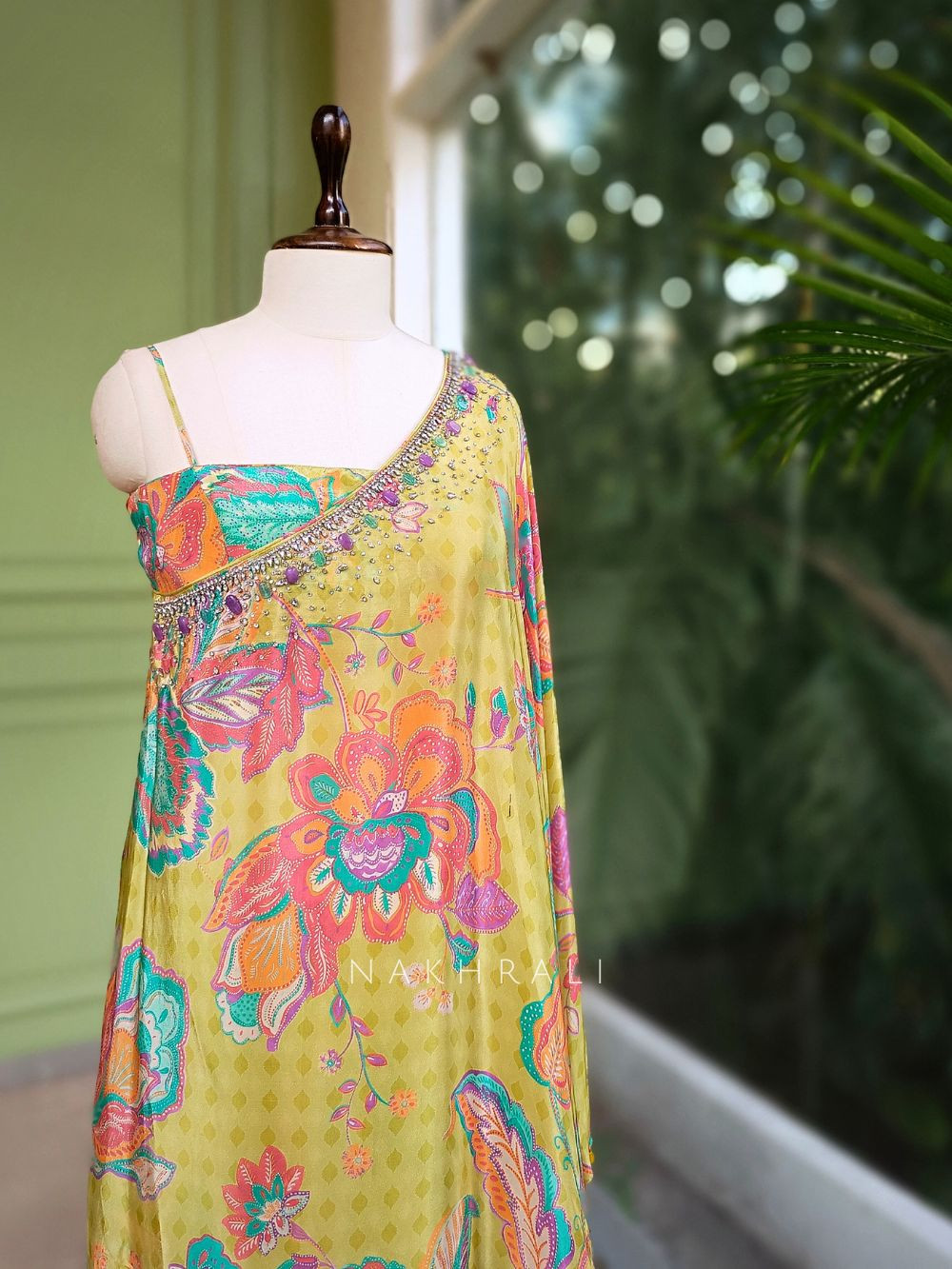 Dry clean only. Store separately in a soft bag. Avoid direct sunlight to prevent color fading. Do not wring or twist fabric. Steam iron at low temperature.