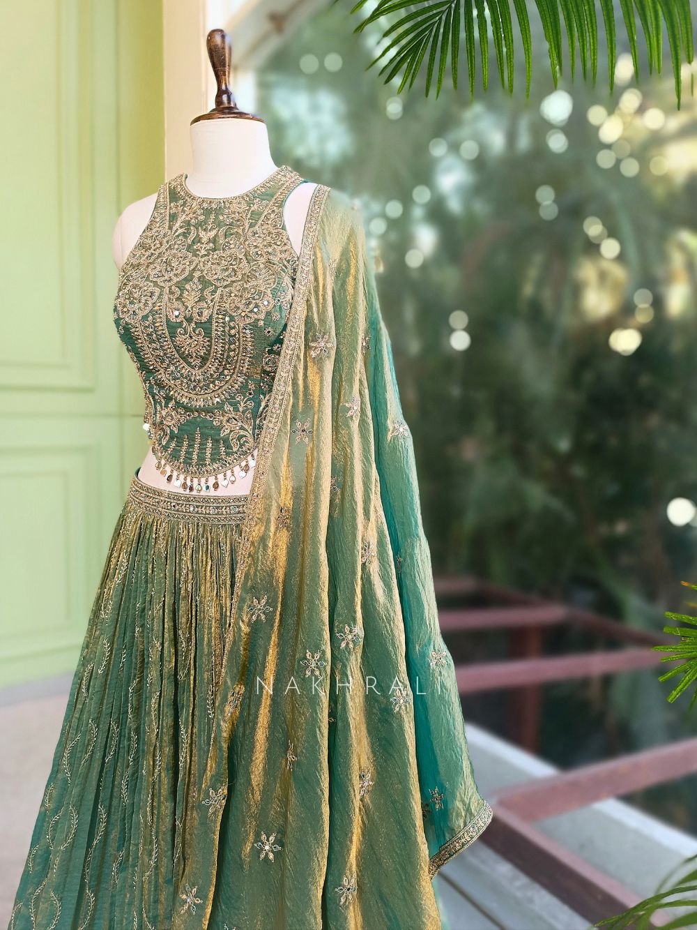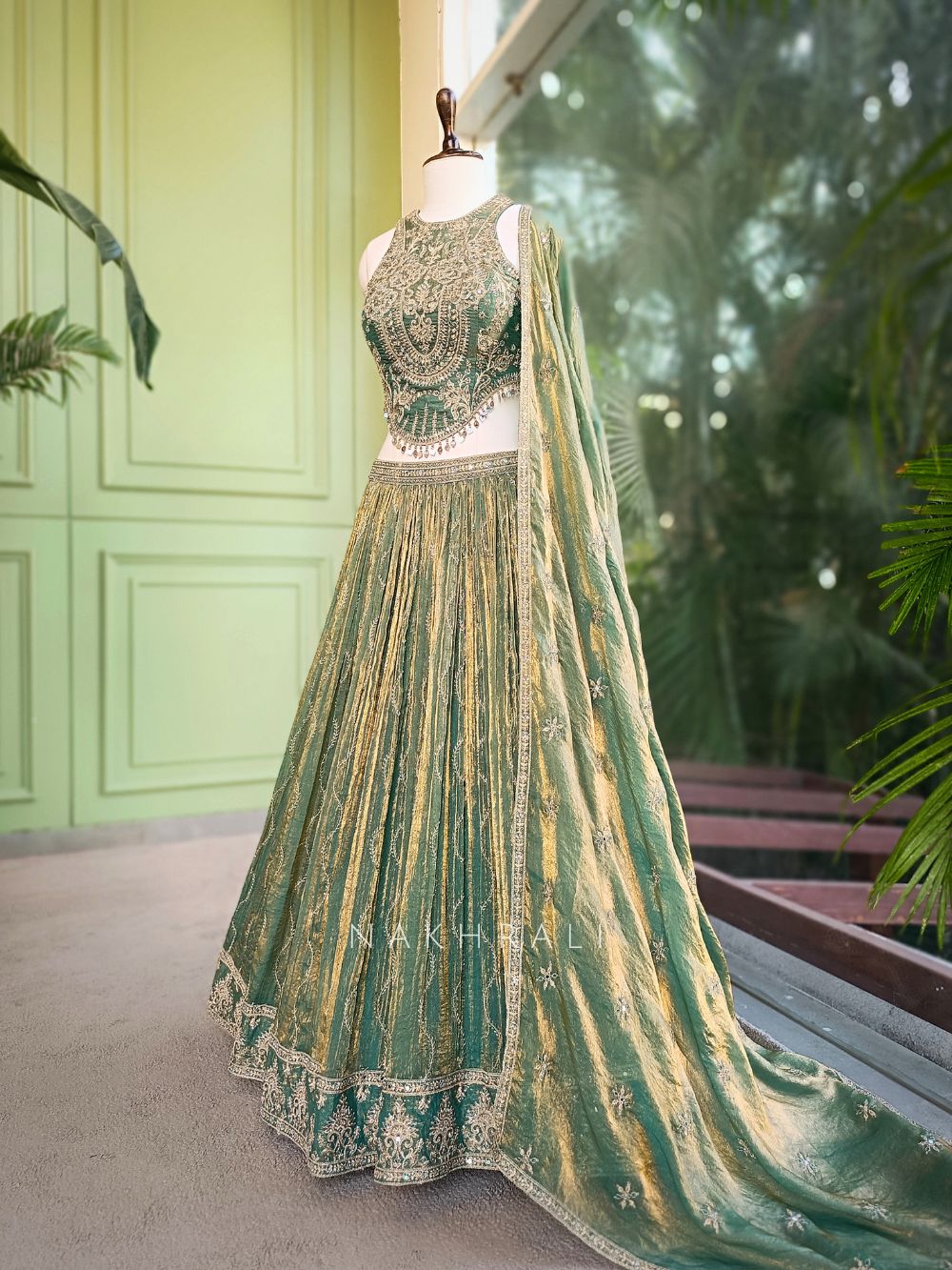Mirelle Sea Green Lehenga Set with Embroidery and Mirror Work