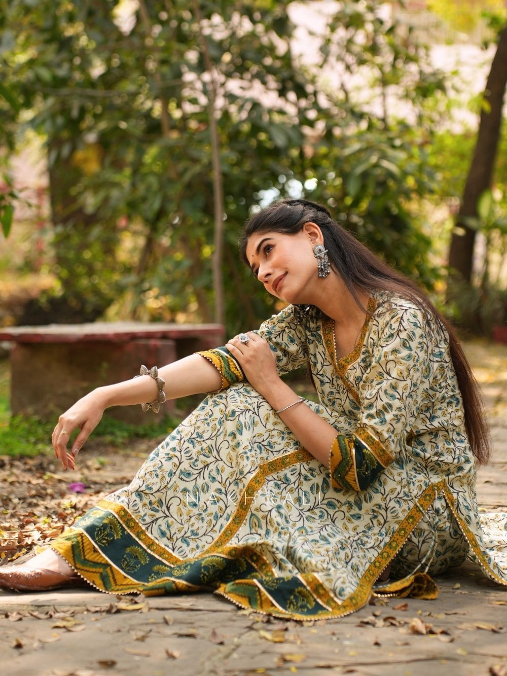 Note : Each bundle of fabric used, is hand-block printed by artisans, making every batch unique. Print motifs evolve over time, but the design, color palette, and essence remain consistent.