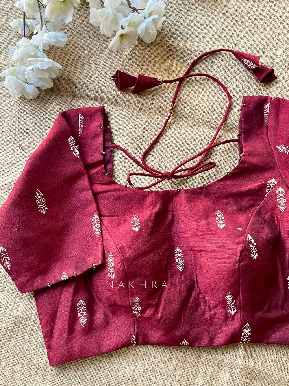 Miwa Maroon Silk Blouse with Ikat Butti