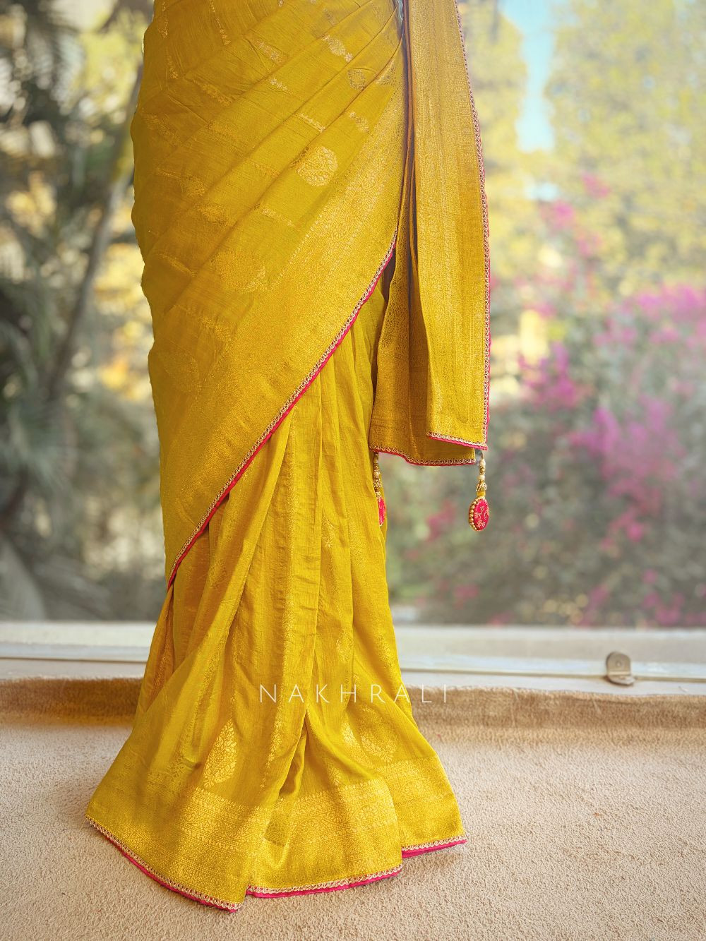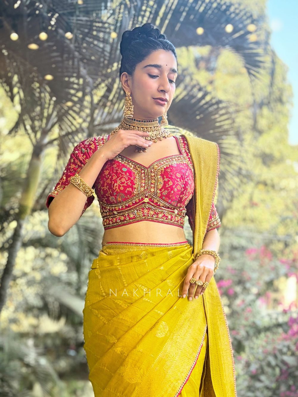 • Wedding Events: Pair with statement polki or kundan jewellery for a majestic bridal/festive look.