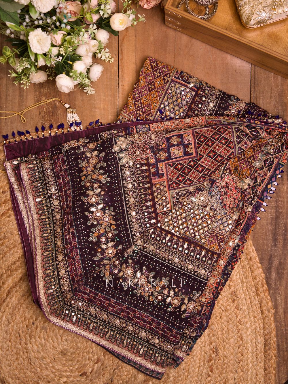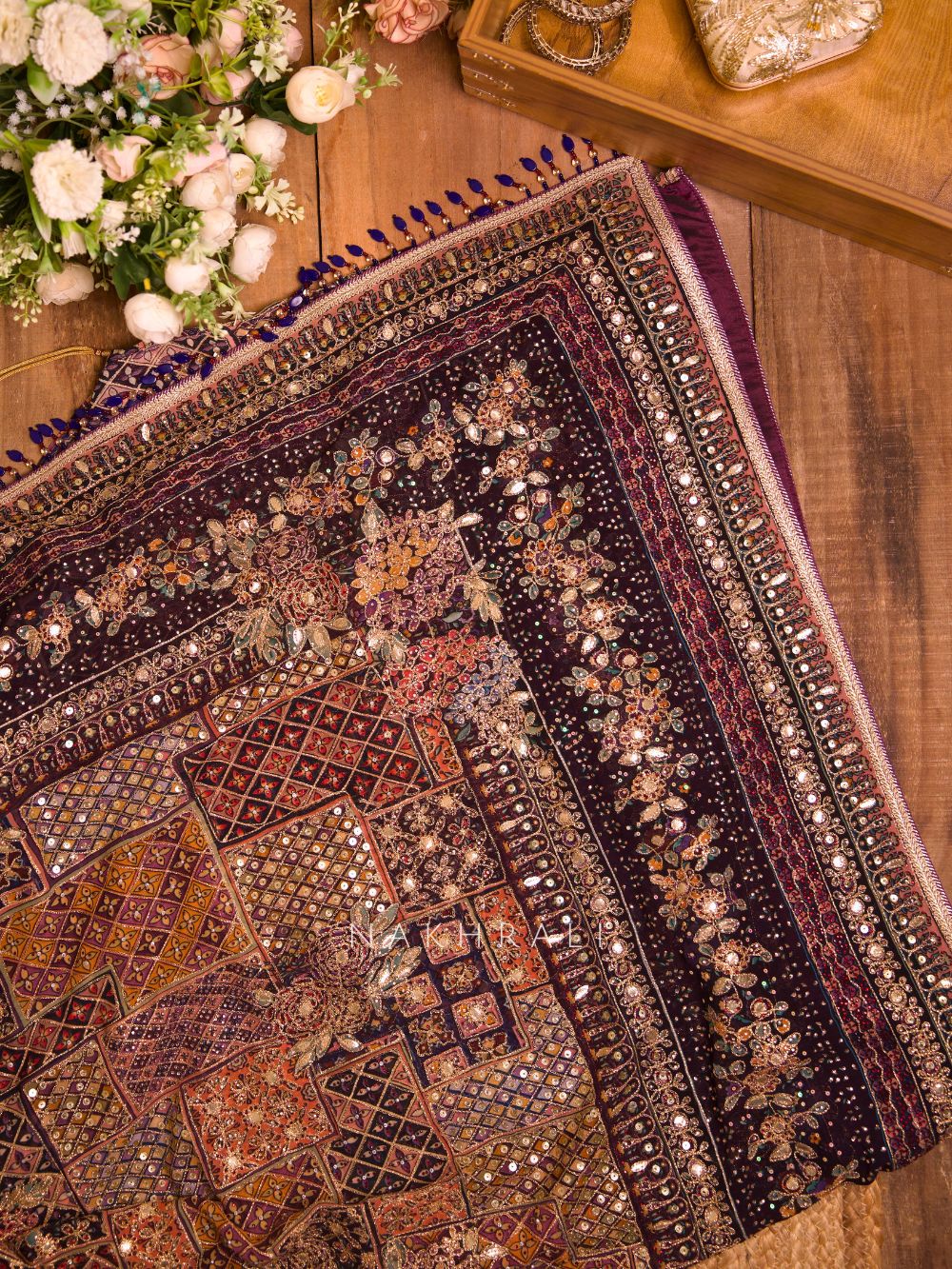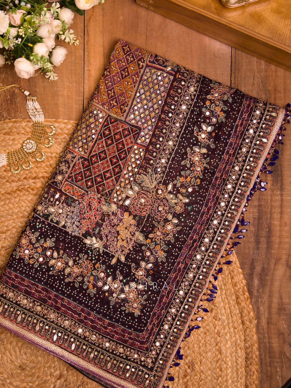Nakkashi Multicolor Bridal Sequin Zari Saree with Ready Blouse
