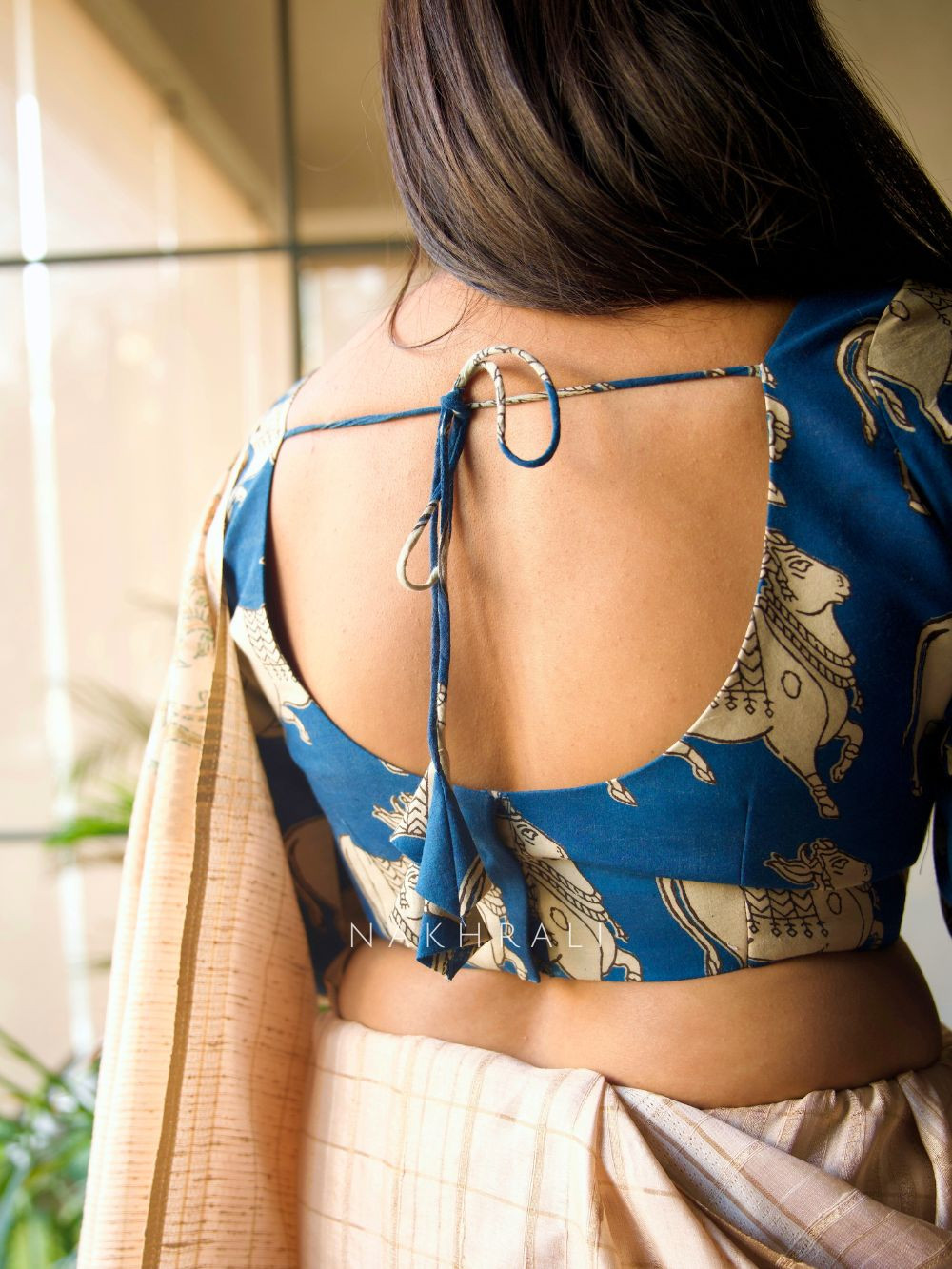 This Nandi Blue Cotton Printed Blouse brings a refreshing twist to classic Indian prints with its bold blue base and detailed Nandi cow motifs. Crafted in soft cotton, it offers breathable comfort for long wear. The scoop neckline, elbow sleeves, and secure tie-up back add structure and ease. Ideal for pairing with handloom sarees, cotton drapes, festive prints, or contrast solid sarees, it works beautifully for daytime outings, small festive gatherings, and cultural events.