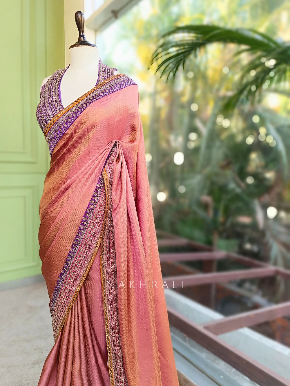 Nazara Onion Pink Satin Saree with Embroidered Sequin Blouse