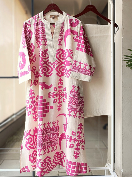 Neerja Ease brings together comfort and colour in the form of a magenta cotton kurta pant set designed for all-day wear. The kurta features minimal detailing and a relaxed silhouette, while the straight-fit pants keep the look smart and versatile. Perfect for casual workdays, family get-togethers, or light festive moments, this set wraps you in breathable ease with a splash of vibrant tradition.