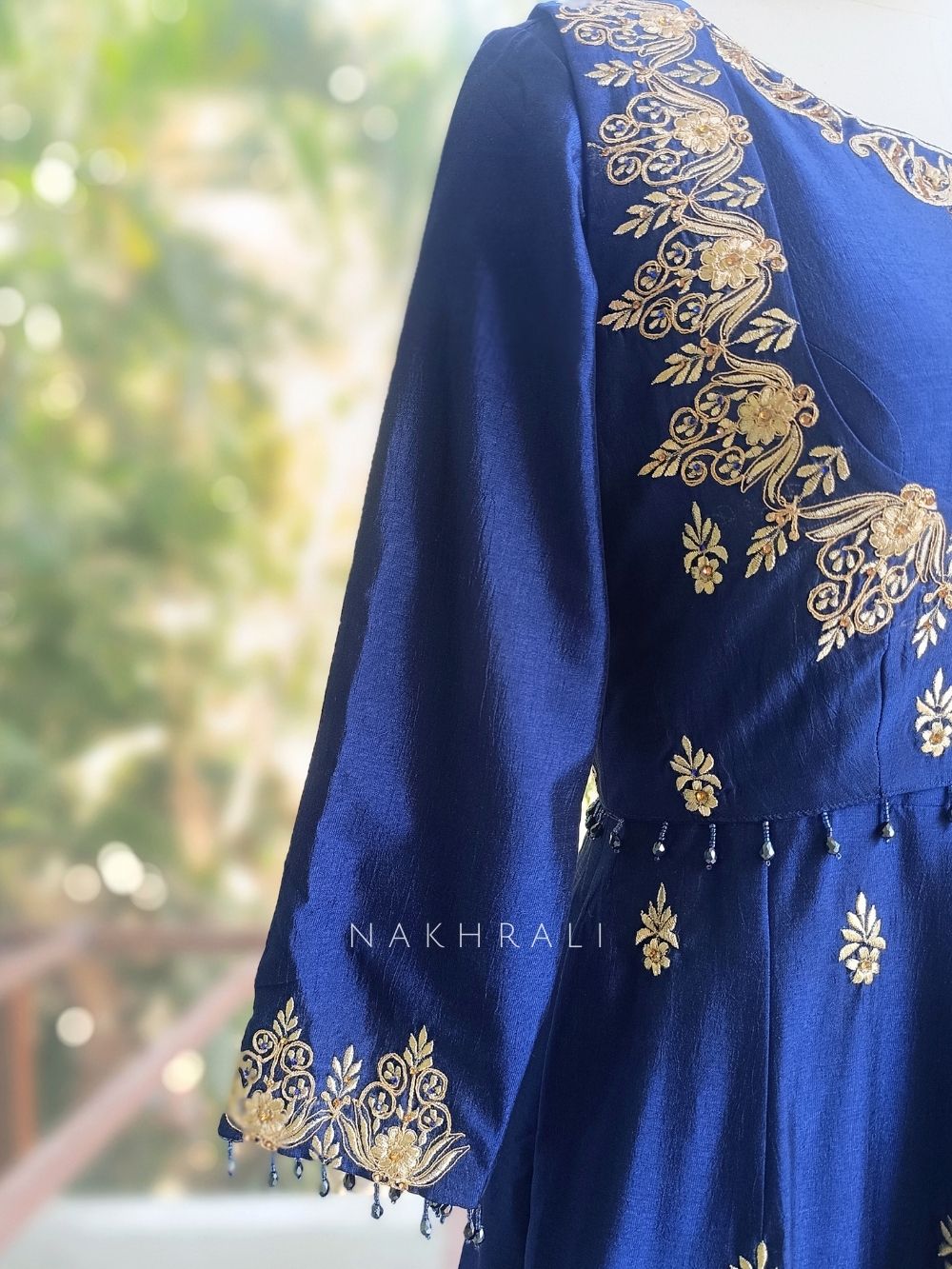 Bridal Trousseau: Pair with statement chandbali earrings and embellished heels to highlight the regal embroidery.