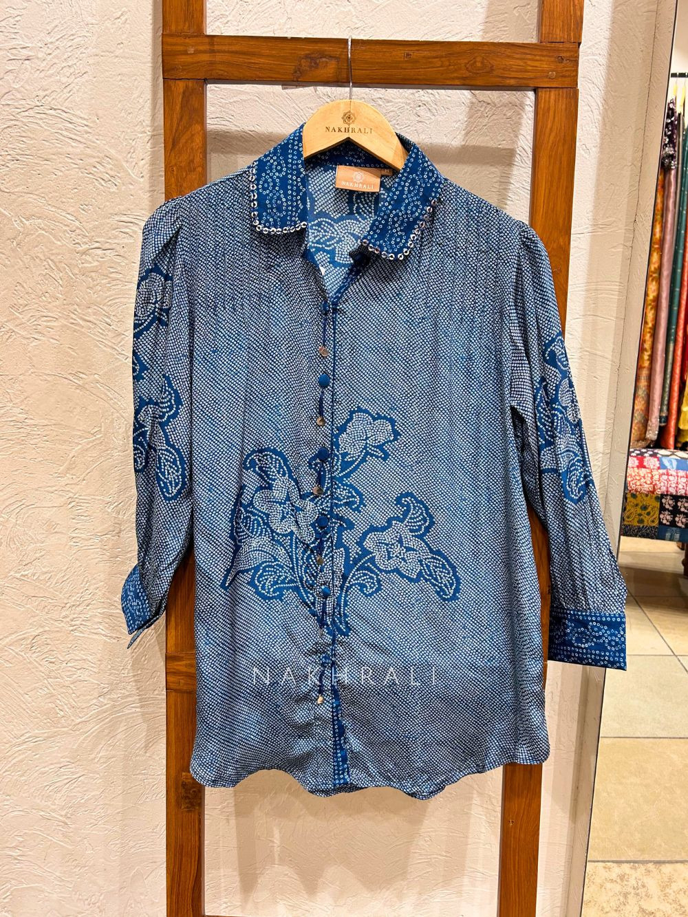 This floral printed shirt is designed for effortless everyday wear while keeping the look rooted in detail. It features an all-over fine print with highlighted floral motifs that add depth without overpowering the design. The collared neckline is enhanced with subtle embellishment detailing, giving it a polished finish. Finished with front buttons and softly structured sleeves, this shirt balances comfort with visual interest, making it suitable for casual outings, workdays, and easy festive dressing when styled right.