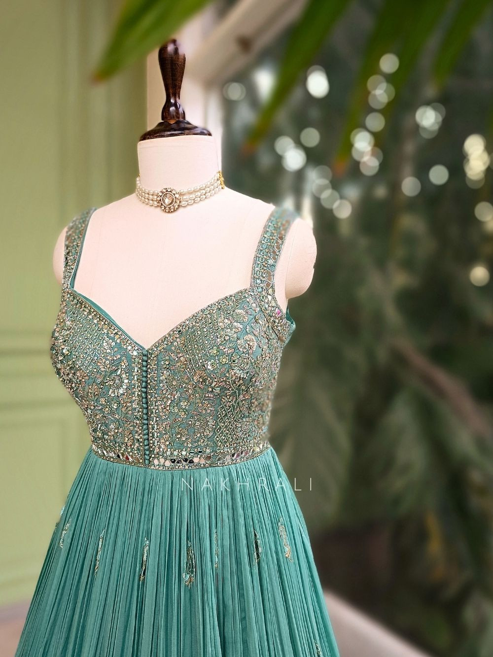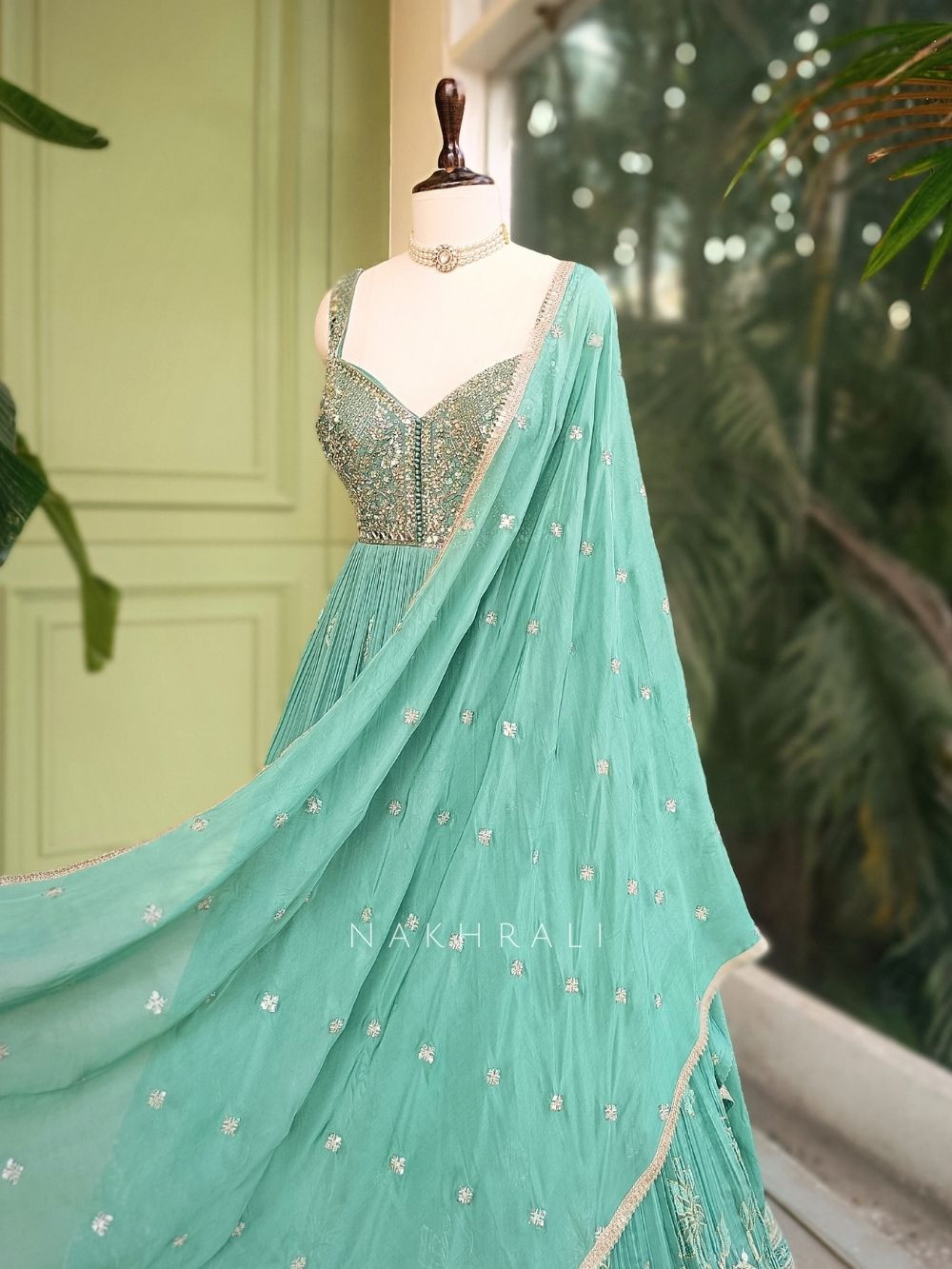 Nivra Sea Green Zardozi Anarkali Set with Dupatta