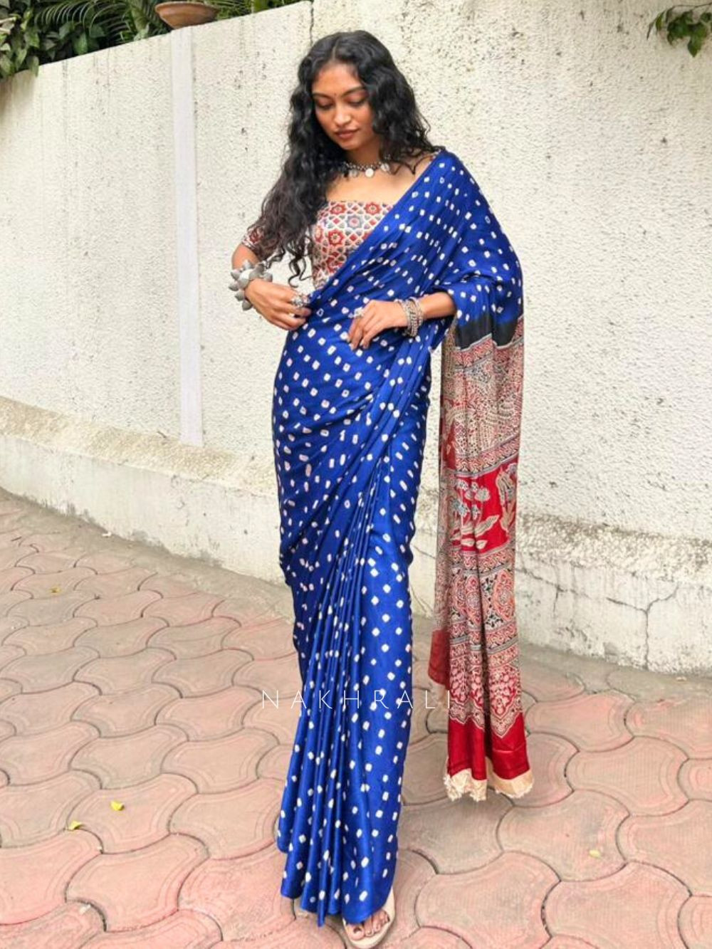 Niyati Blue Modal Saree with Ajrakh Pallu