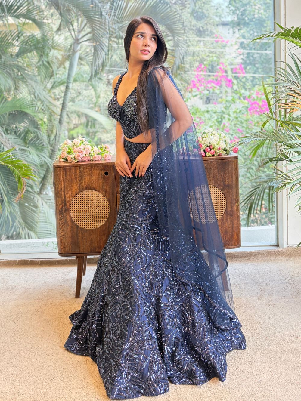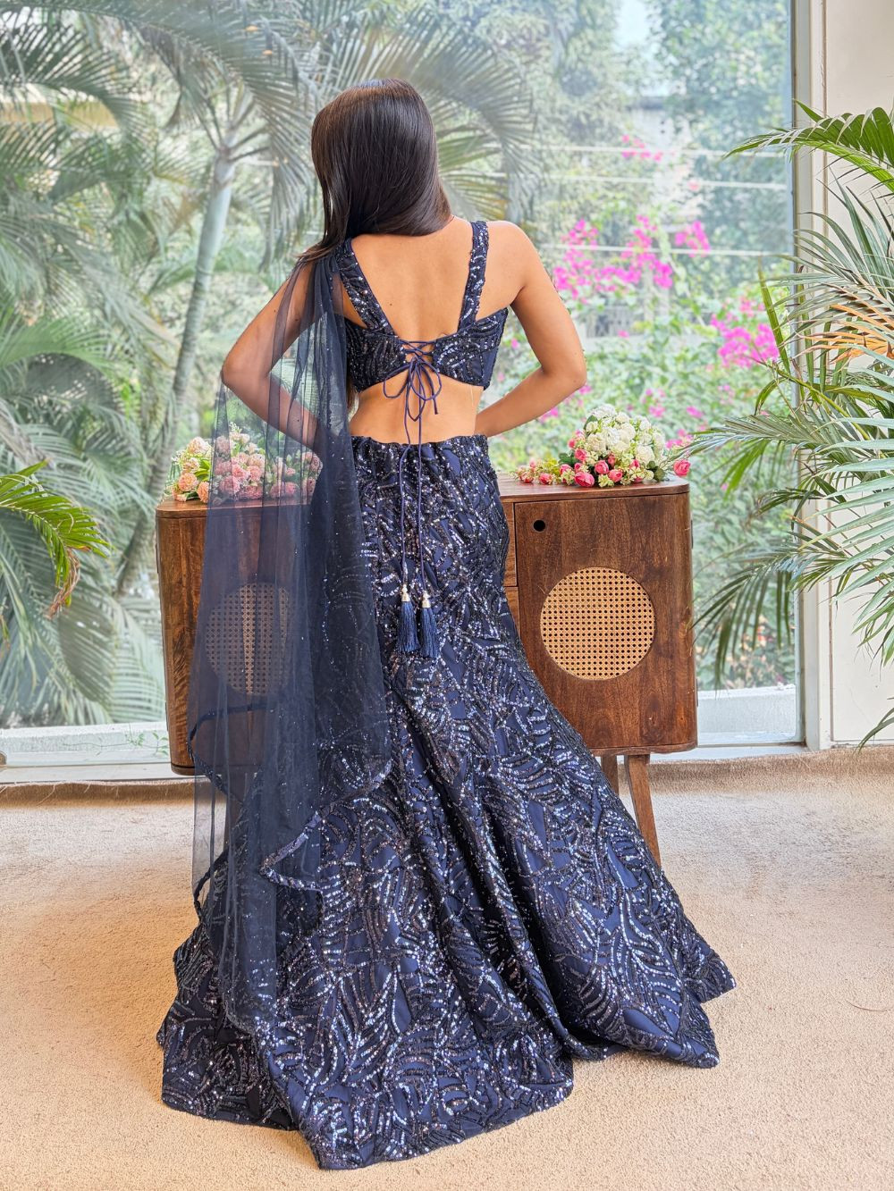 Noir Blue Indo-Western Lehenga with Sequin & Cut Dana Work