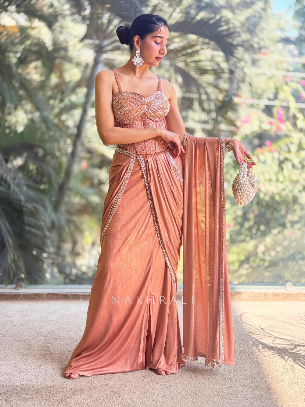 Noir Diva Peach Drape Saree with Sequin and Cut Dana Work