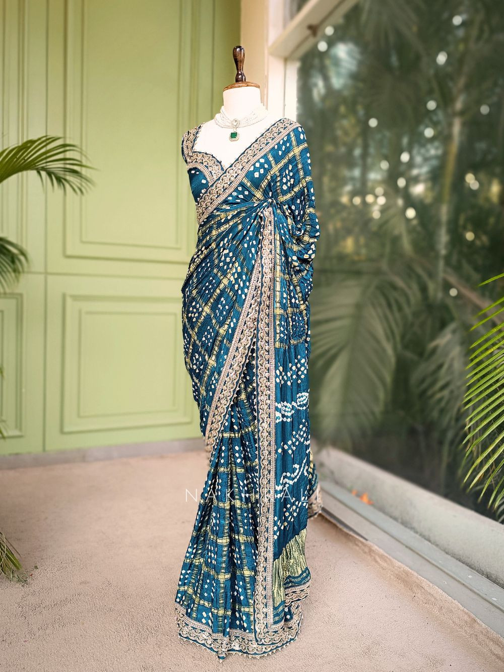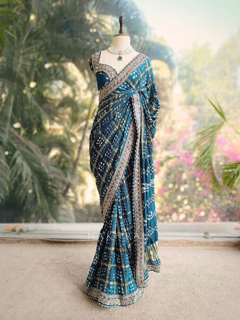 Cultural Events: Add a statement blouse design and minimal accessories to keep the focus on the Bandhani work.