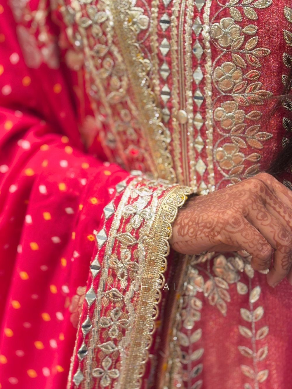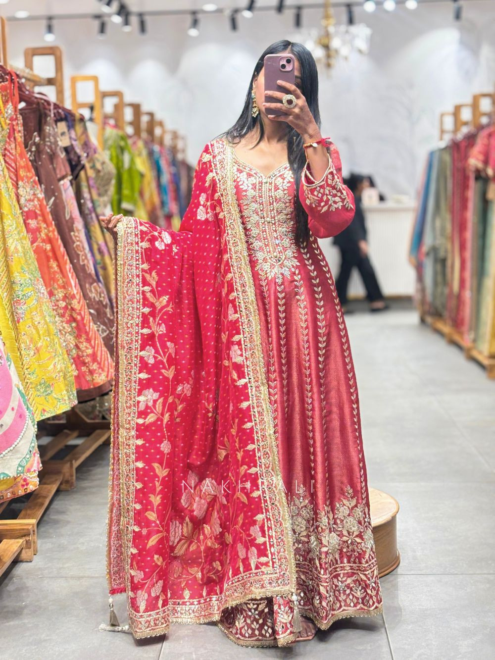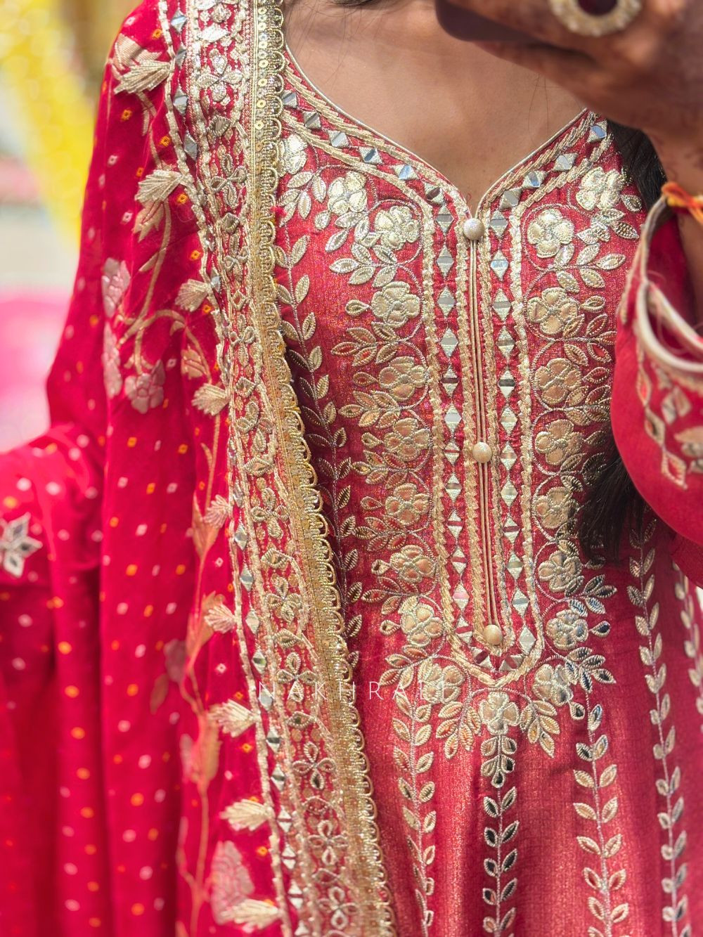 Nooriza Red Anarkali Set with Mirror Gota Patti and Zari Work