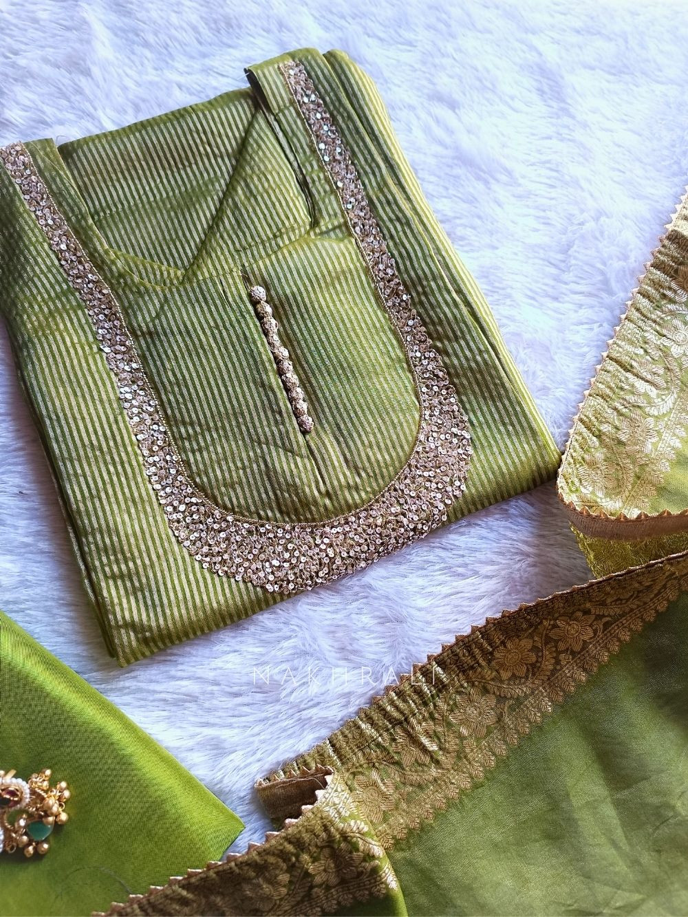 Olive Whisper Green Kurta Palazzo Set with Zari and Gota Patti Work