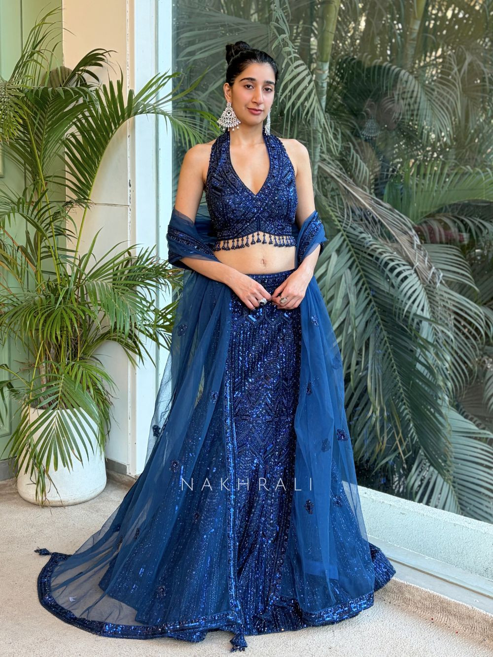 Nyra Blue Sequin Net Indowestern Lehenga Set