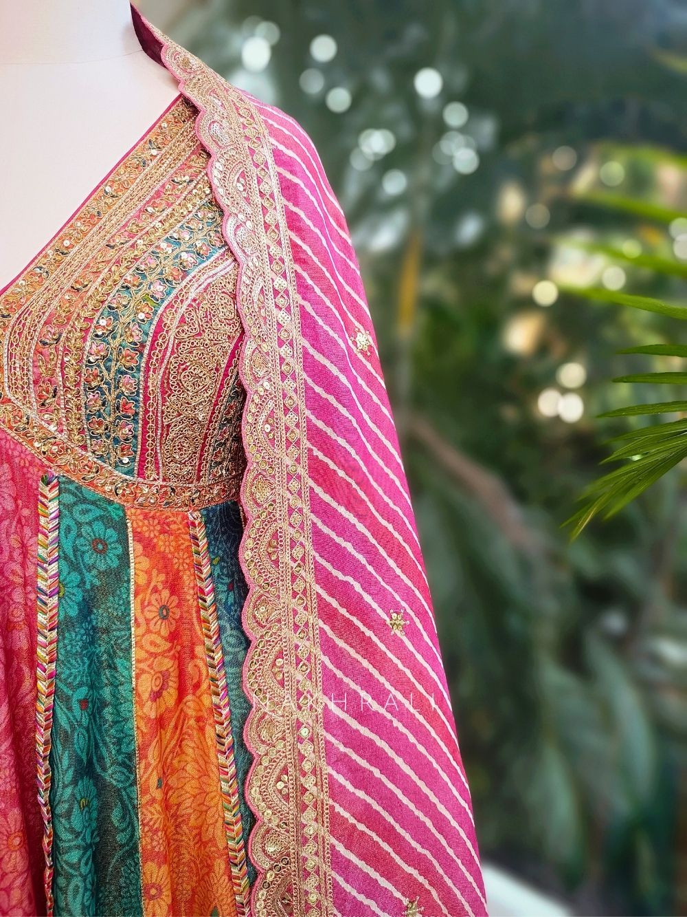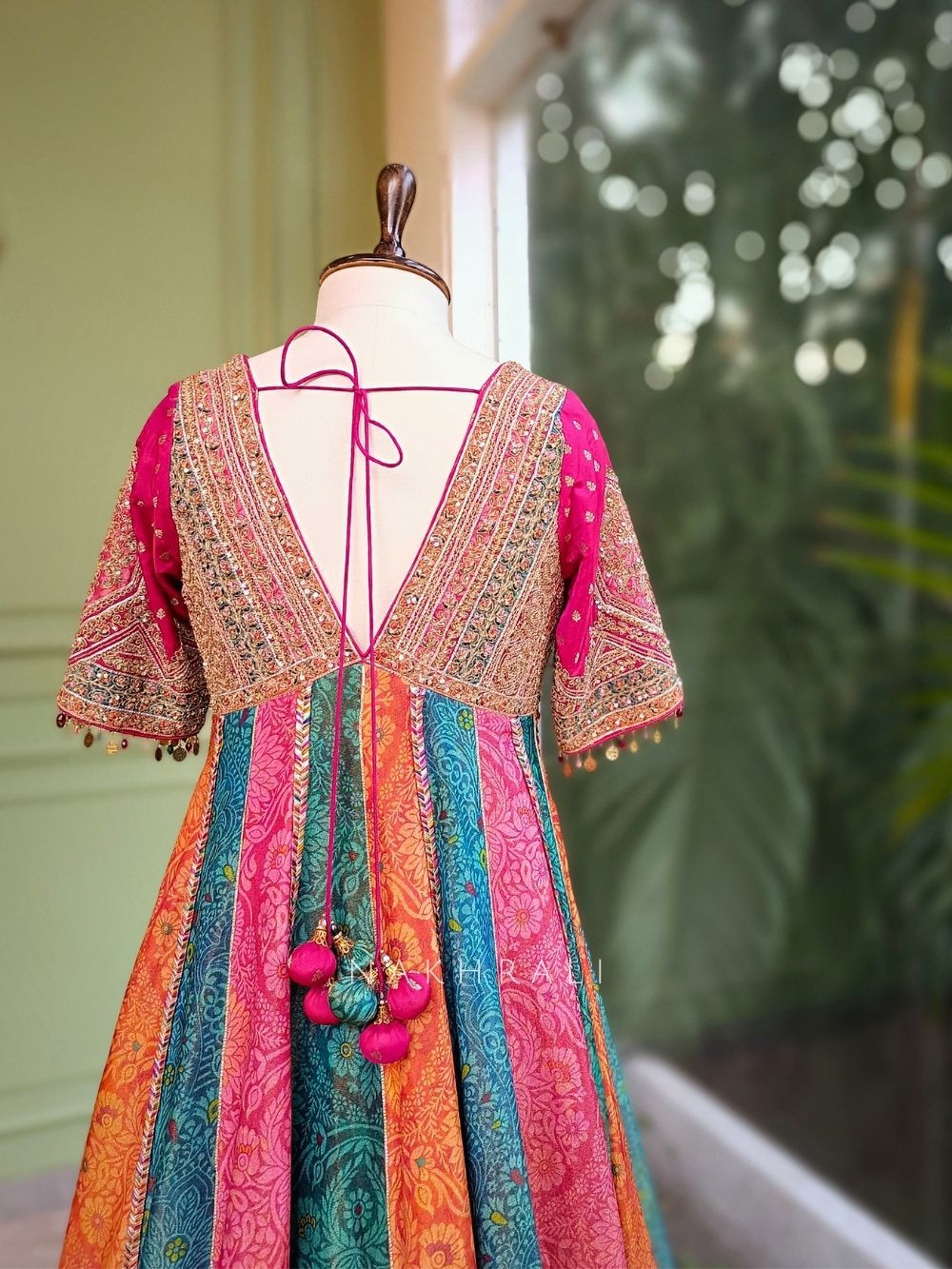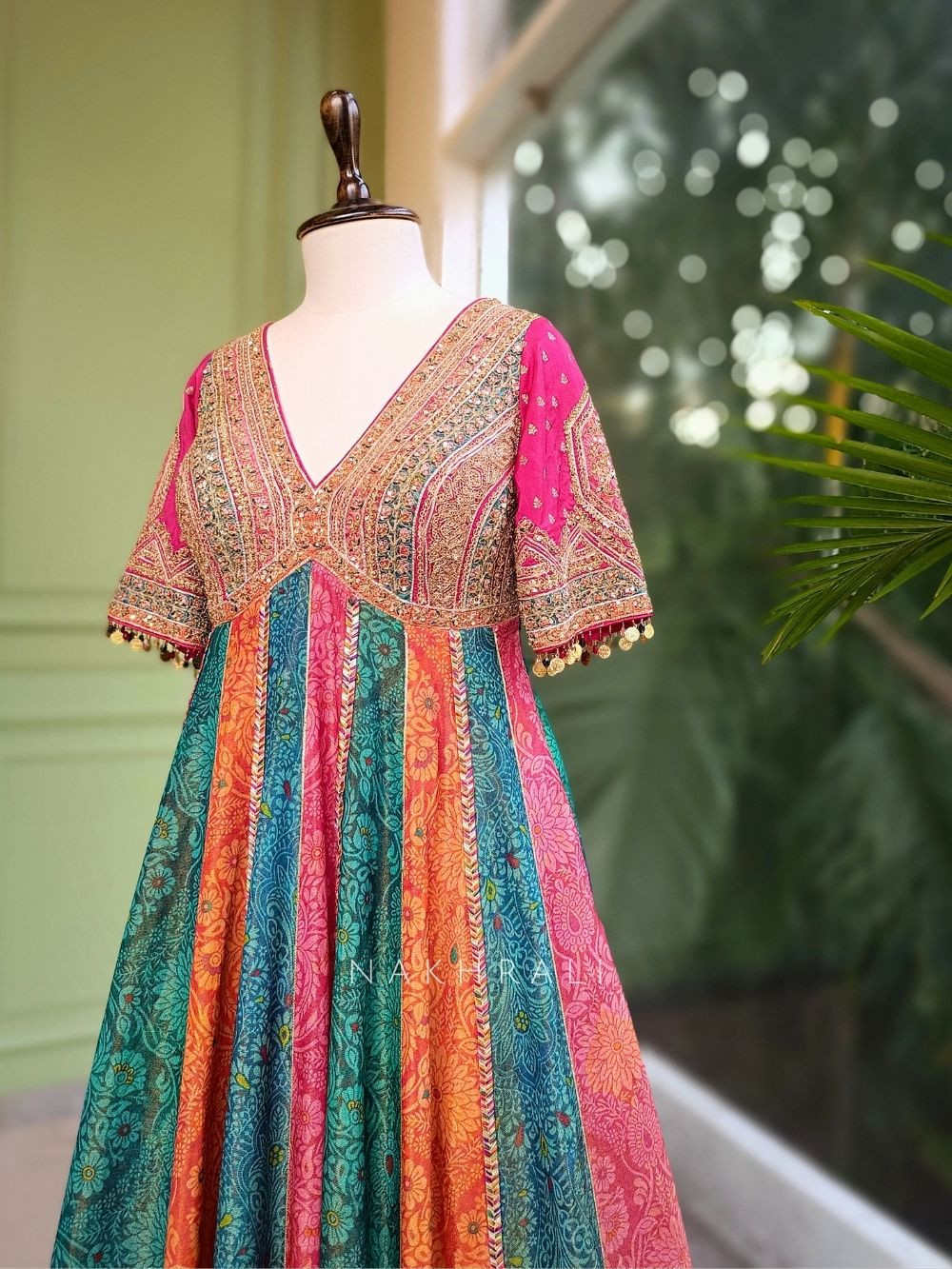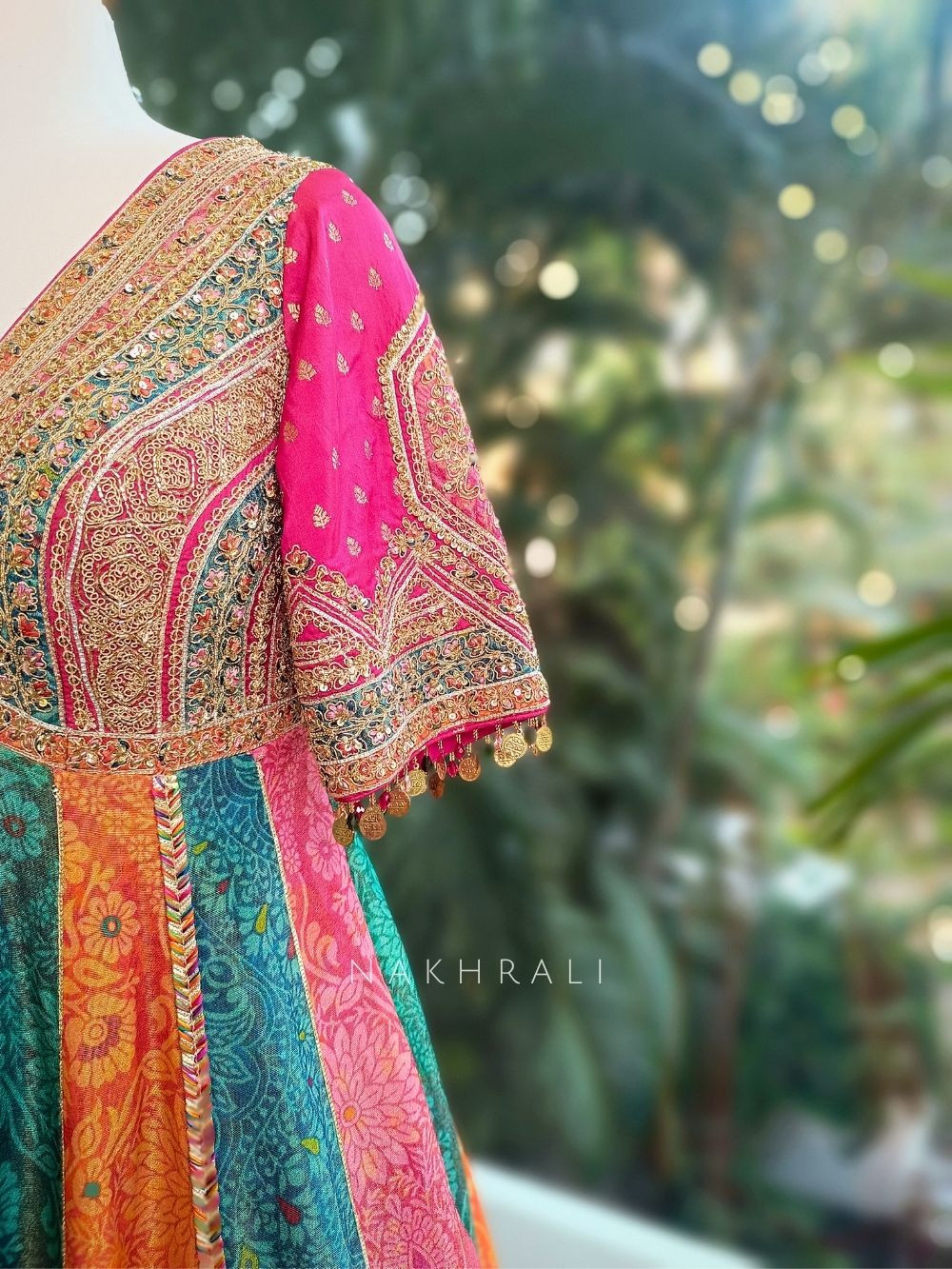 Care Tips: Dry clean only; avoid direct washing. Store in a cool, dry place wrapped in muslin. Keep away from direct sunlight to maintain color vibrancy. Iron on reverse side with low heat. Handle embroidery gently to prevent snagging.