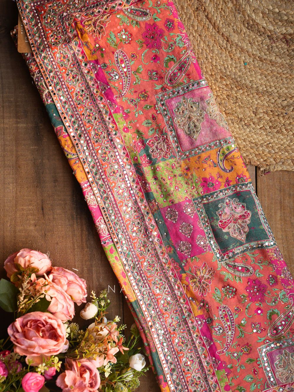 Dry clean only to protect mirror and thread embroidery