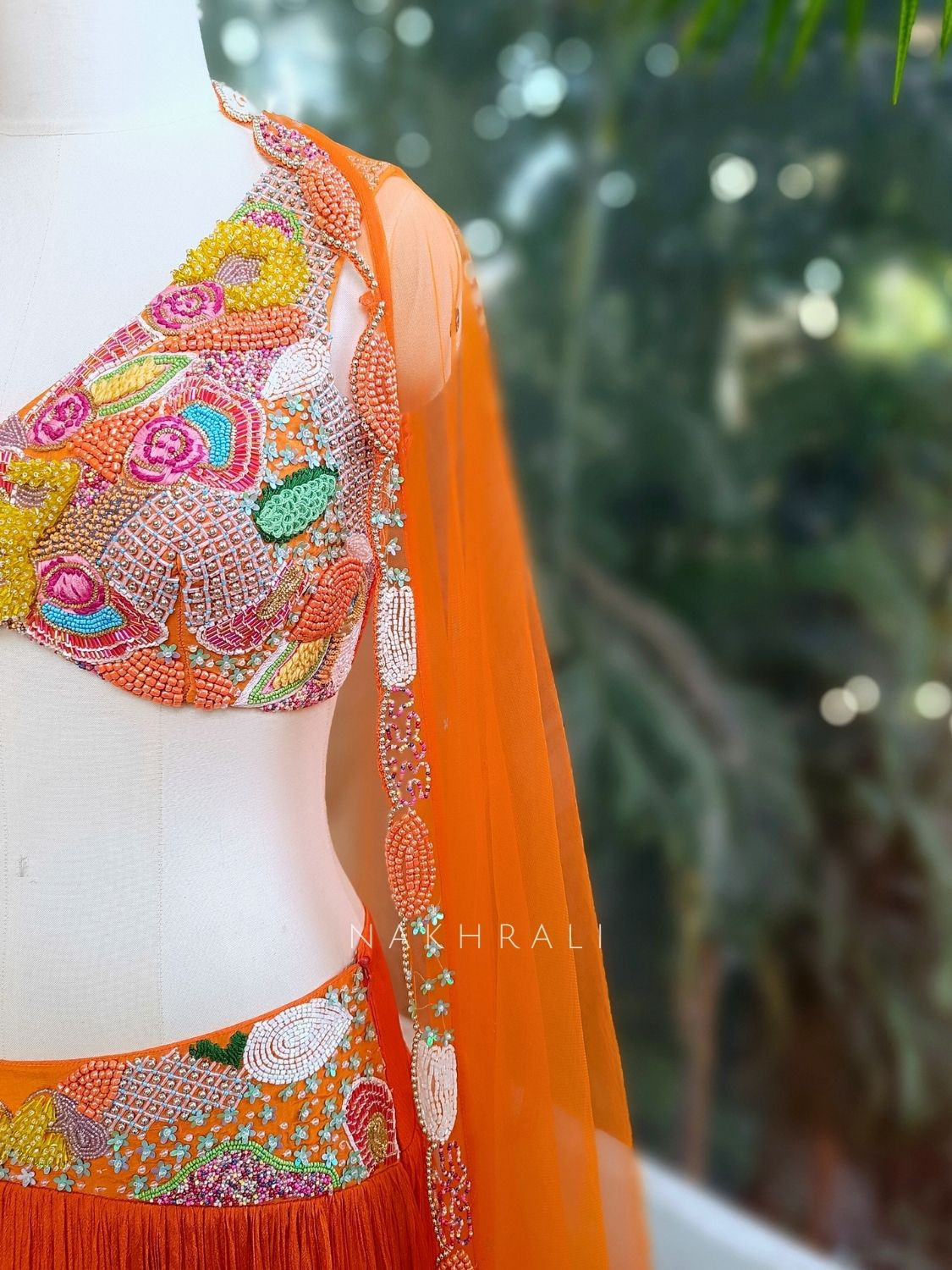 Raviera Orange Lehenga Set with Bead Embroidered Blouse