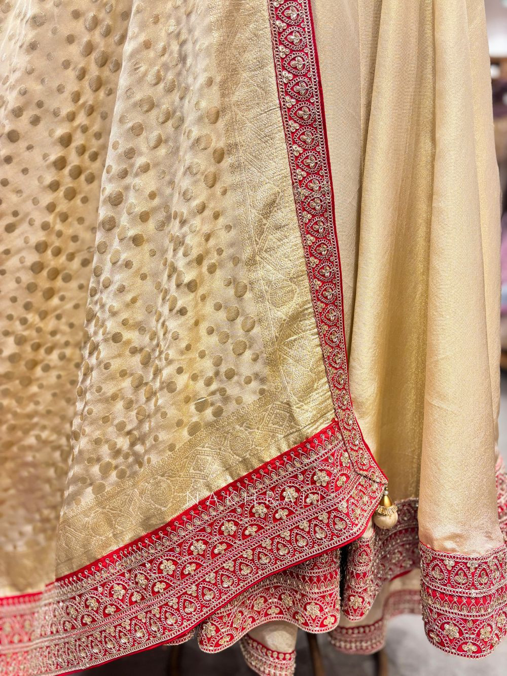 Regalia Cream Anarkali Gharara Set with Sequin & Zari Work