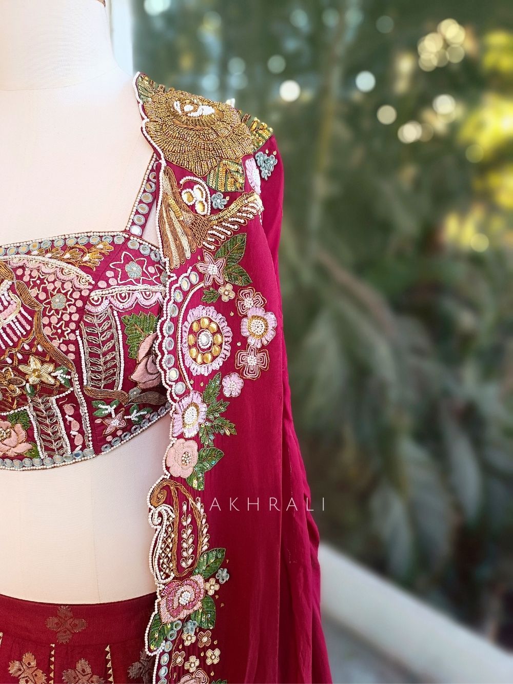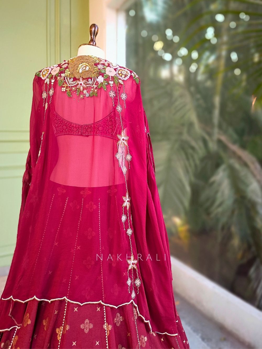 Riva Maroon Indowestern Lehenga Set with Embroidered Cape