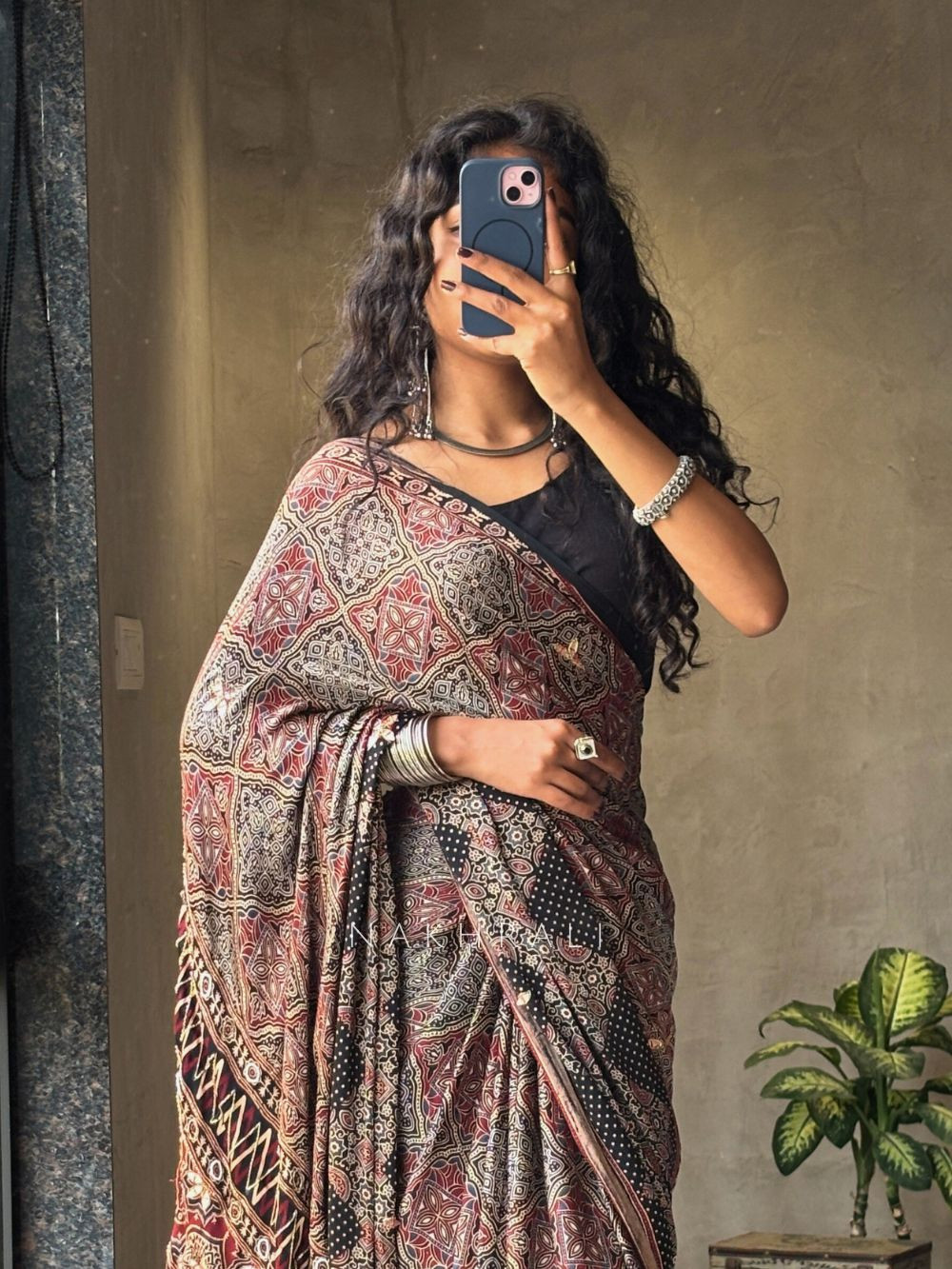 • Festive Gatherings: Pair with oxidised or antique gold jewellery and a sleek bun to highlight the pallu details.