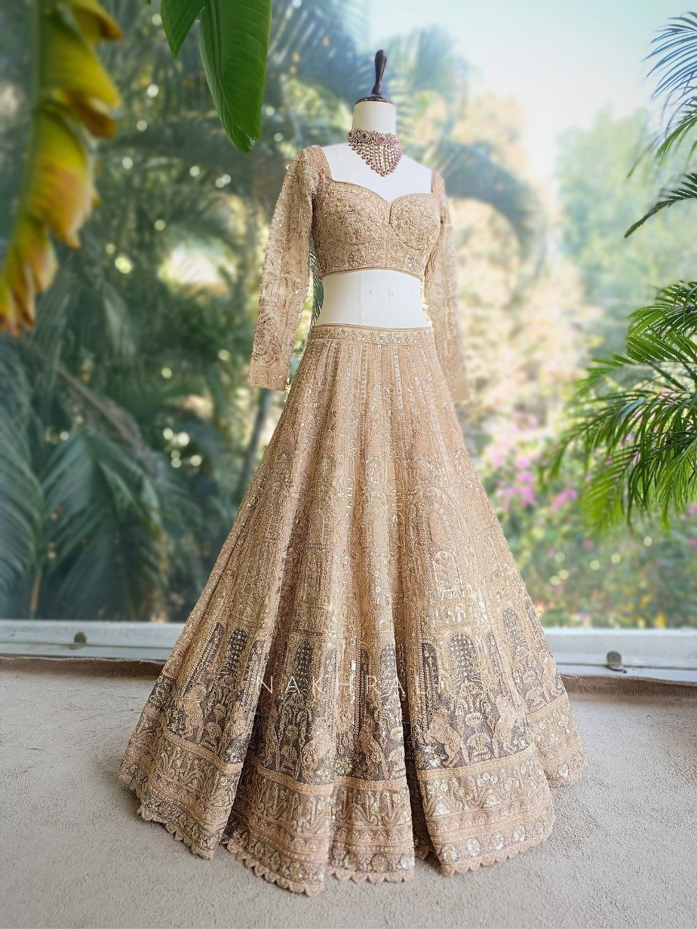 Wedding Ceremony: Pair with statement kundan jewellery, a maang tikka, and a traditional bun to create a regal bridal look.