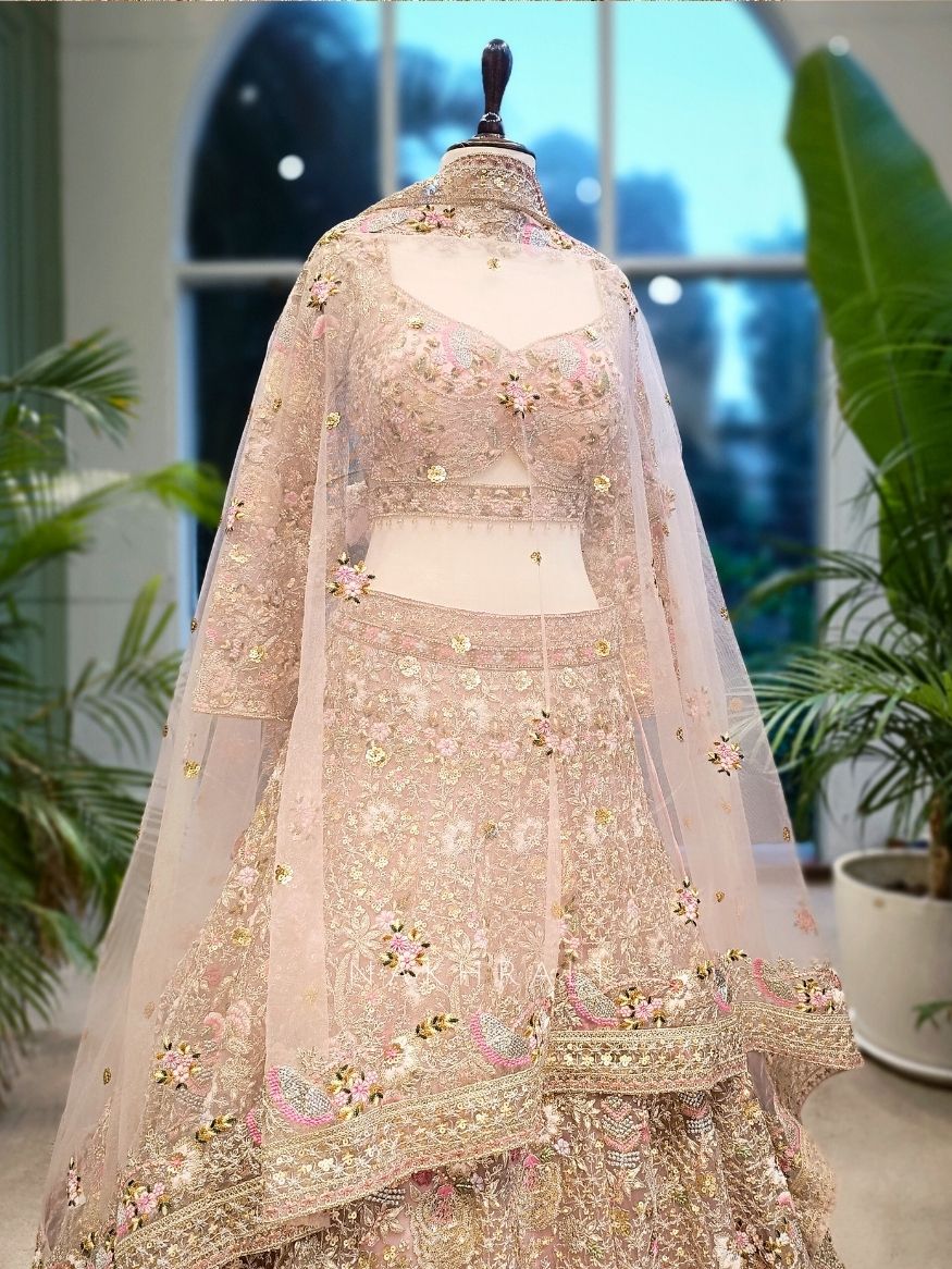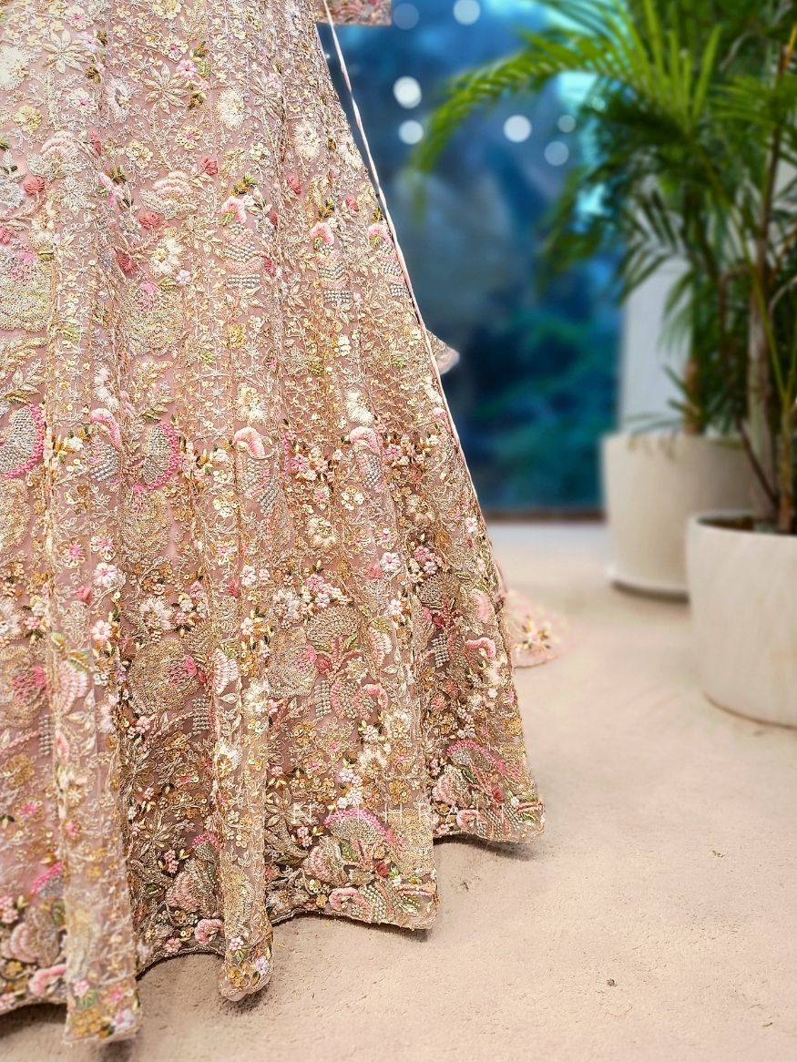 The Rosélia Embroidered Sequin Lehenga is a masterpiece crafted for brides who seek luxury and grace. Designed in a delicate pink hue, it features exquisite embroidery paired with shimmering sequins and beads, creating a breathtaking floral pattern across the skirt and blouse. The dupatta is adorned with embroidered floral motifs, adding ethereal charm. Ideal for weddings, receptions, or grand celebrations, this lehenga embodies sophistication and grandeur, making every moment unforgettable.