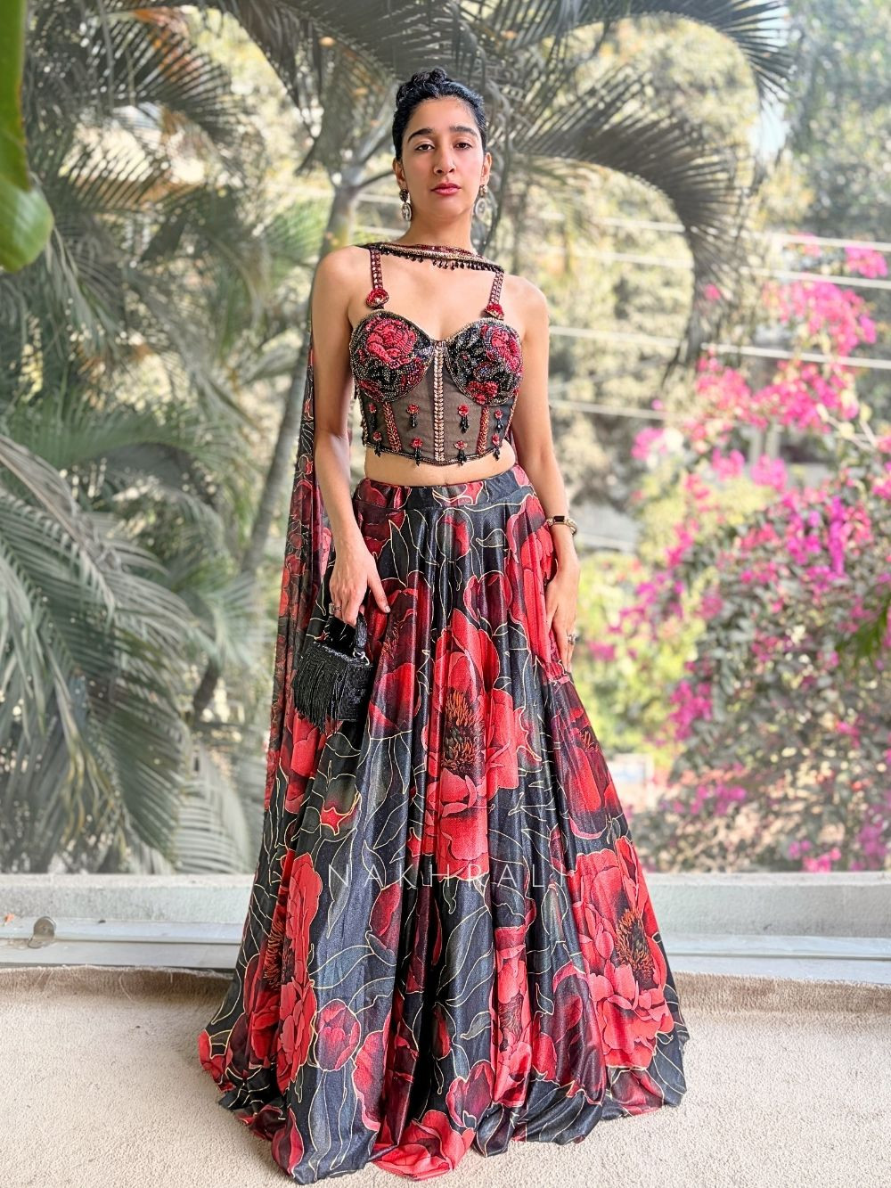 Evening Functions: Style with bold earrings and a sleek clutch to let the corset detailing shine.