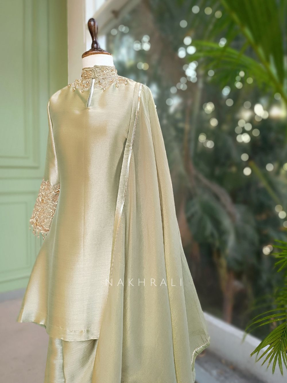 Roselle Pista Green Zari & Sequin Kurta Palazzo Set