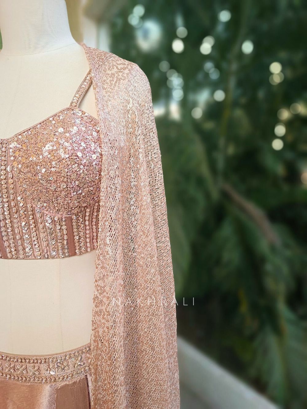 Roséveil Pink Corset Skirt Set with Sequin Work and Cape Shrug