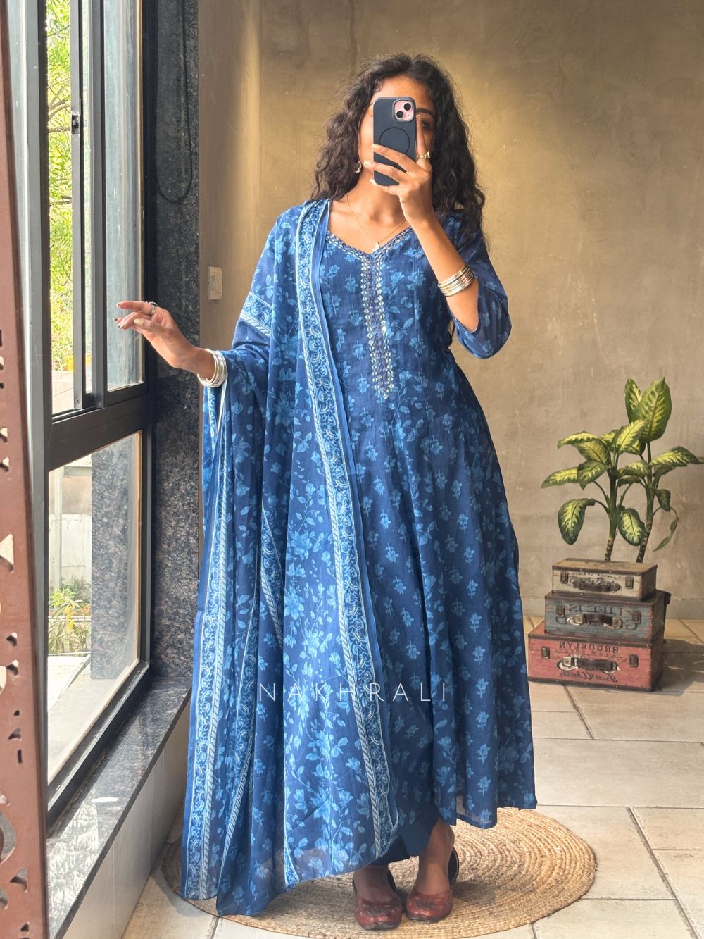 Ruhani Blue Cotton Anarkali Set with Dupatta