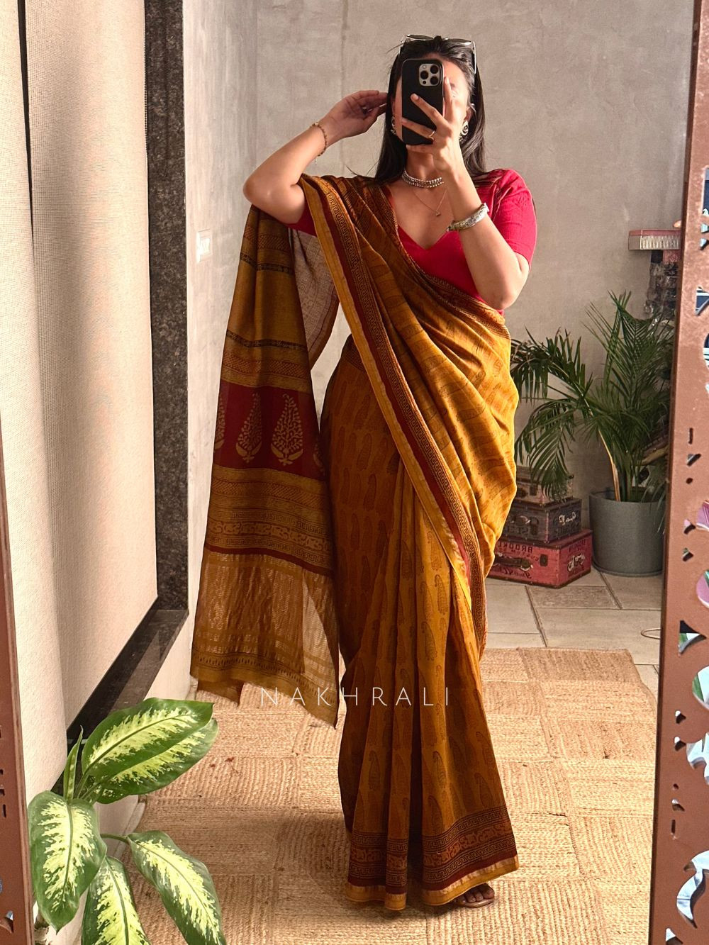 Drape yourself in heritage with the Saanjh Mustard Chanderi Saree—an ode to classic elegance and Indian craftsmanship. Crafted in handloom Chanderi fabric, the saree features a Mustard hue, enhanced by its lightweight texture and sheer finesse. Perfect for festive gatherings, intimate weddings, and cultural occasions, this saree exudes sophistication while offering all-day comfort and an effortless fall.