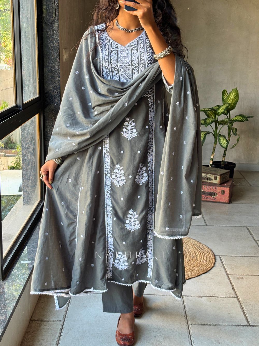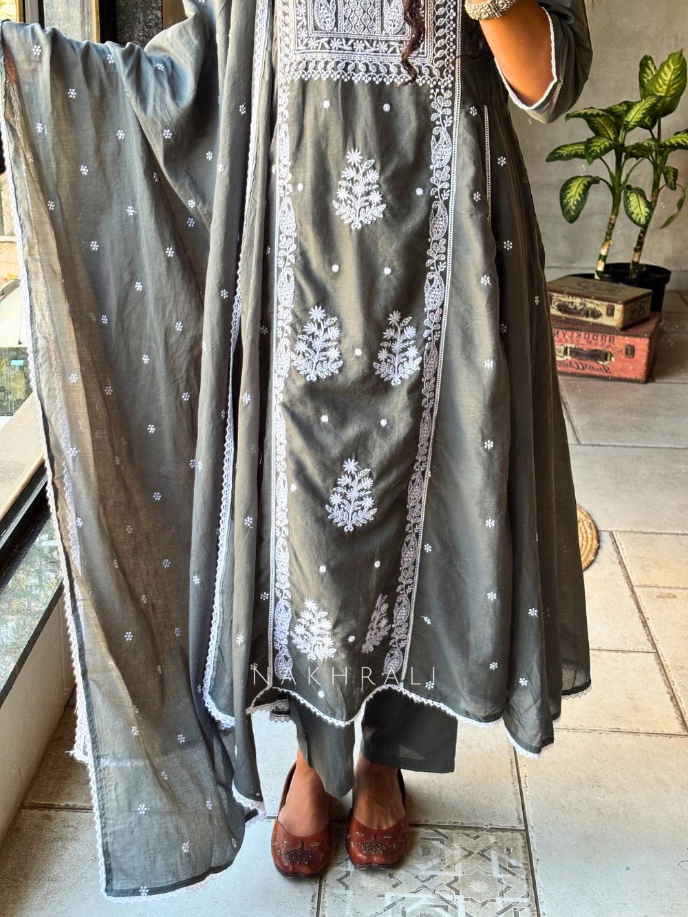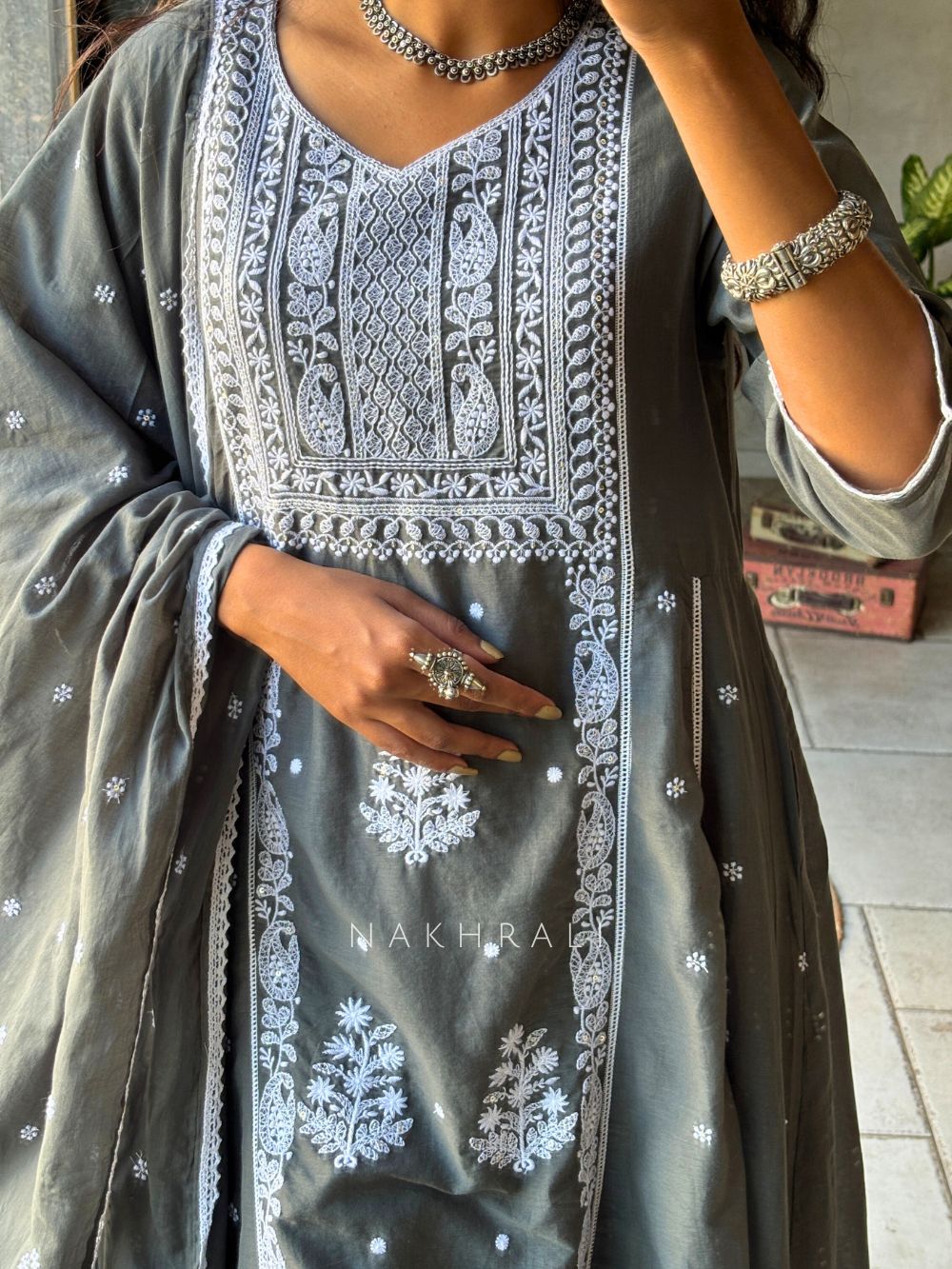 Saesha Grey Chikankari Kurta Set with Dupatta