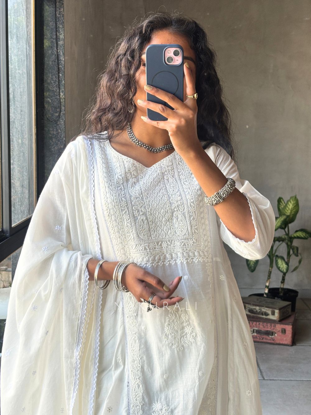 • Iron on reverse side to protect chikankari work