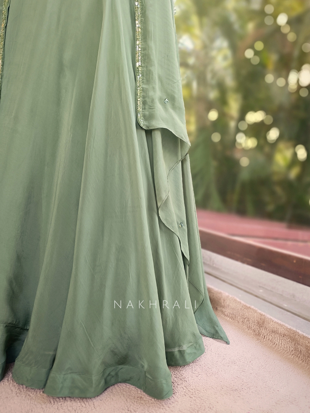 Sage Green Indo Western Lehenga with Pearl Embellished Blouse