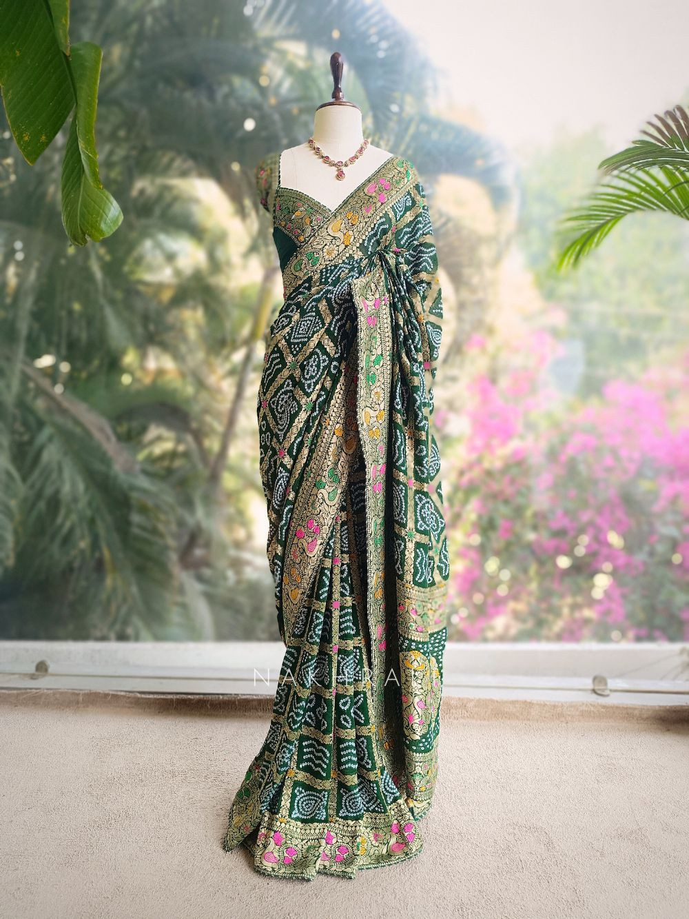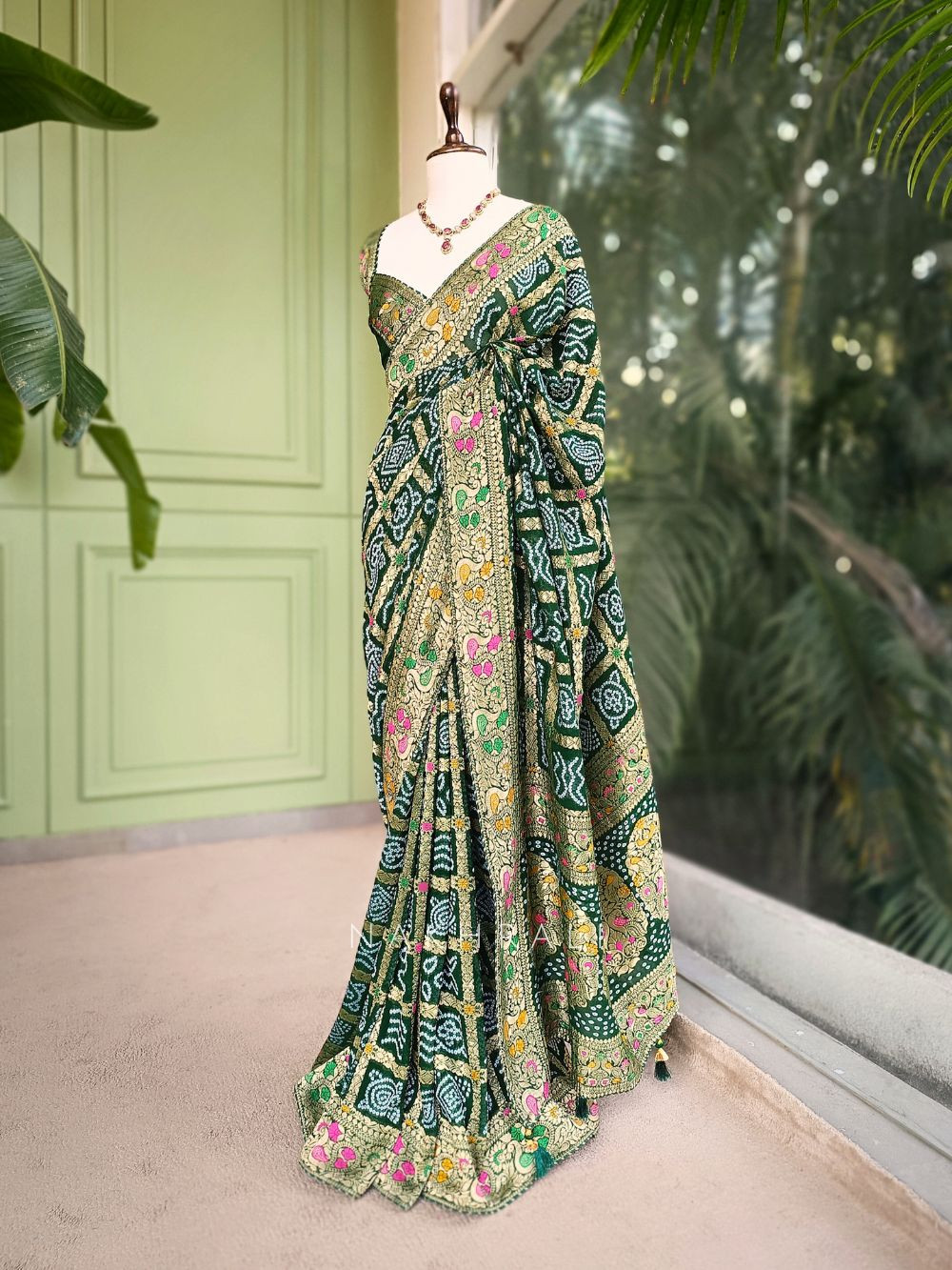 Sanvi Green Bandhani Saree
