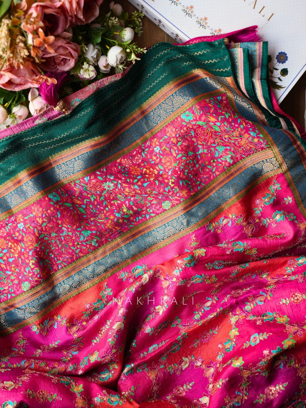 Sarovar Magenta Woven Motif Saree with Traditional Border