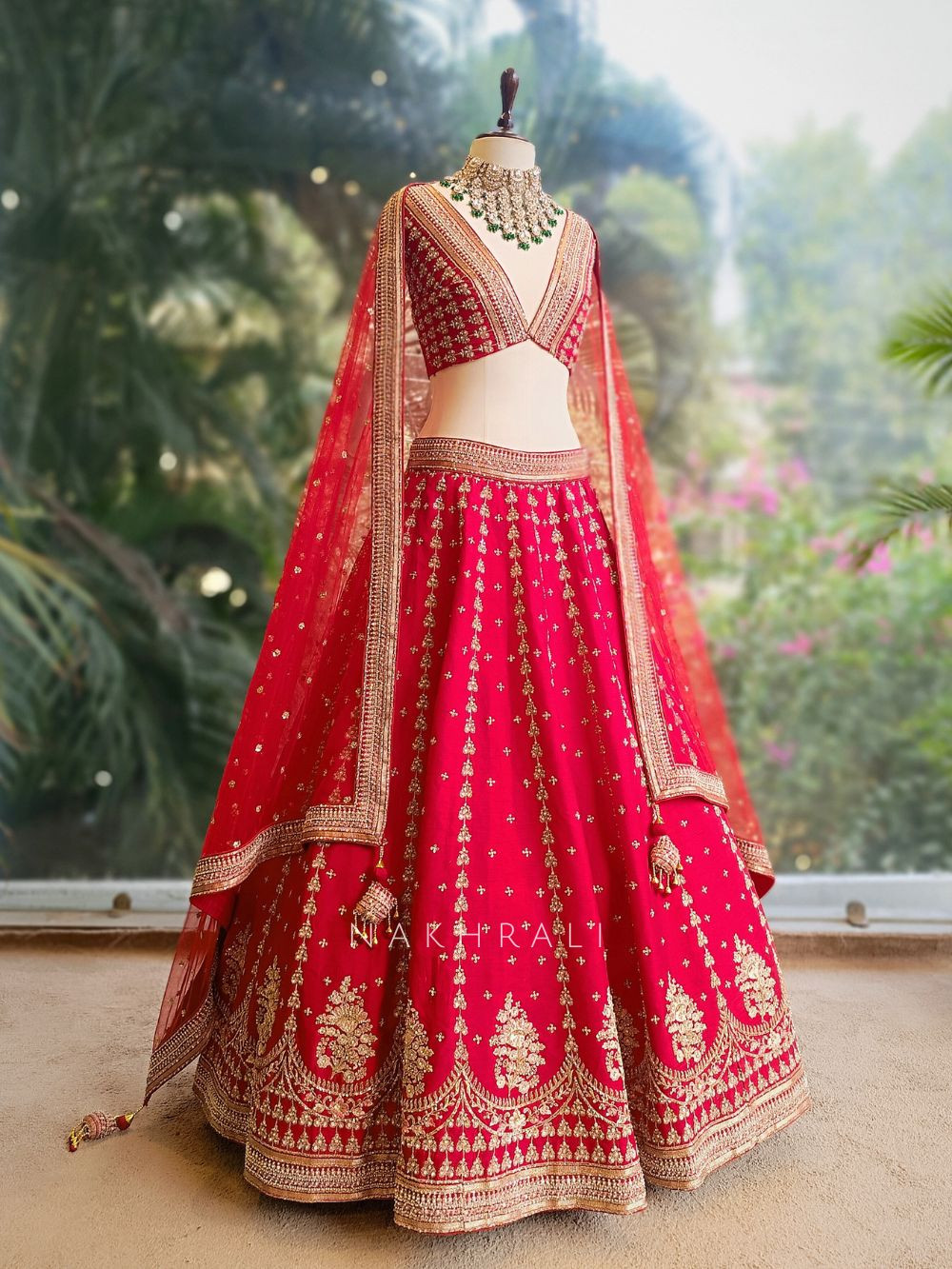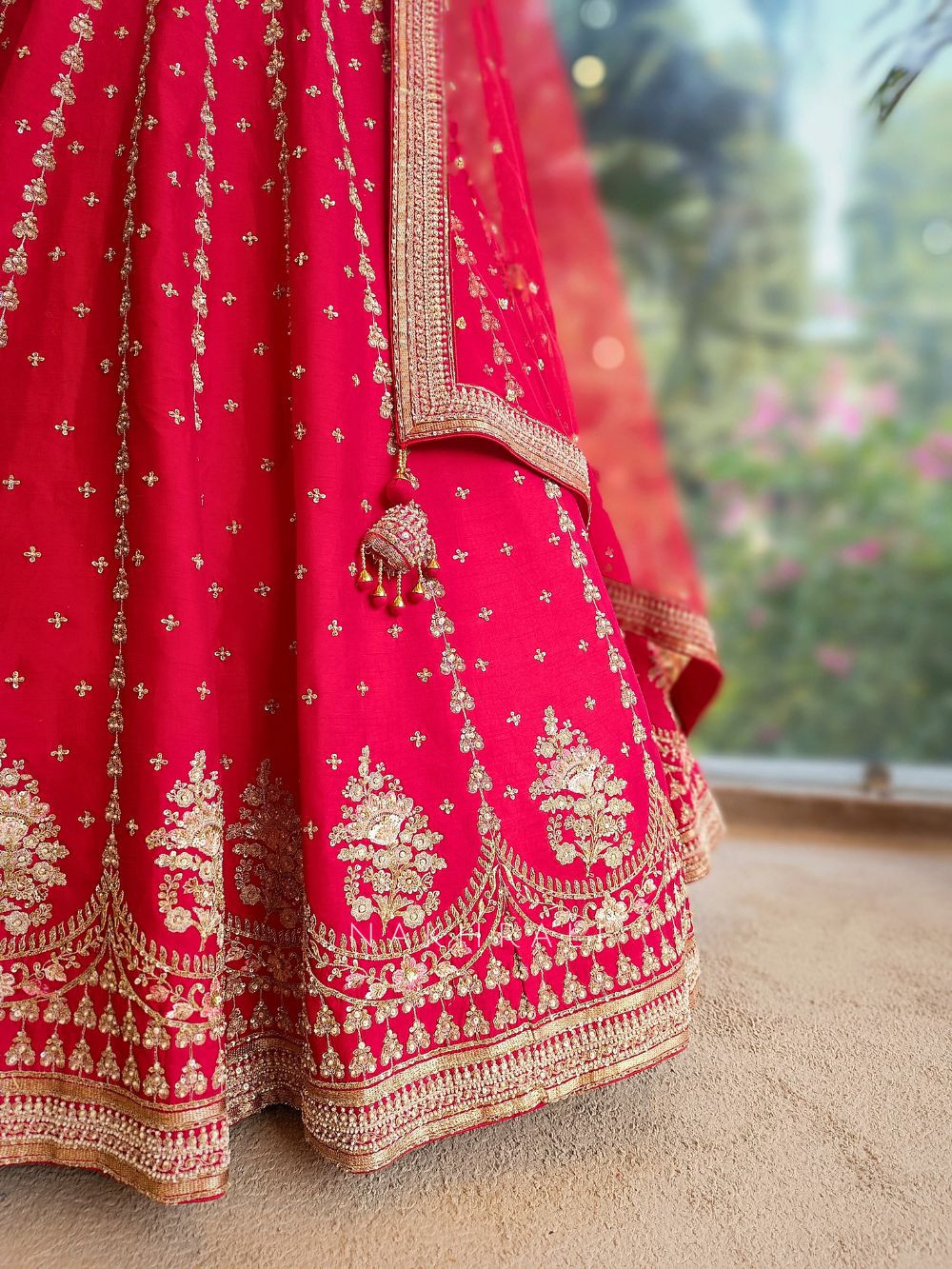 Elysia Red Bridal Lehenga with Zari Sequin Embroidery