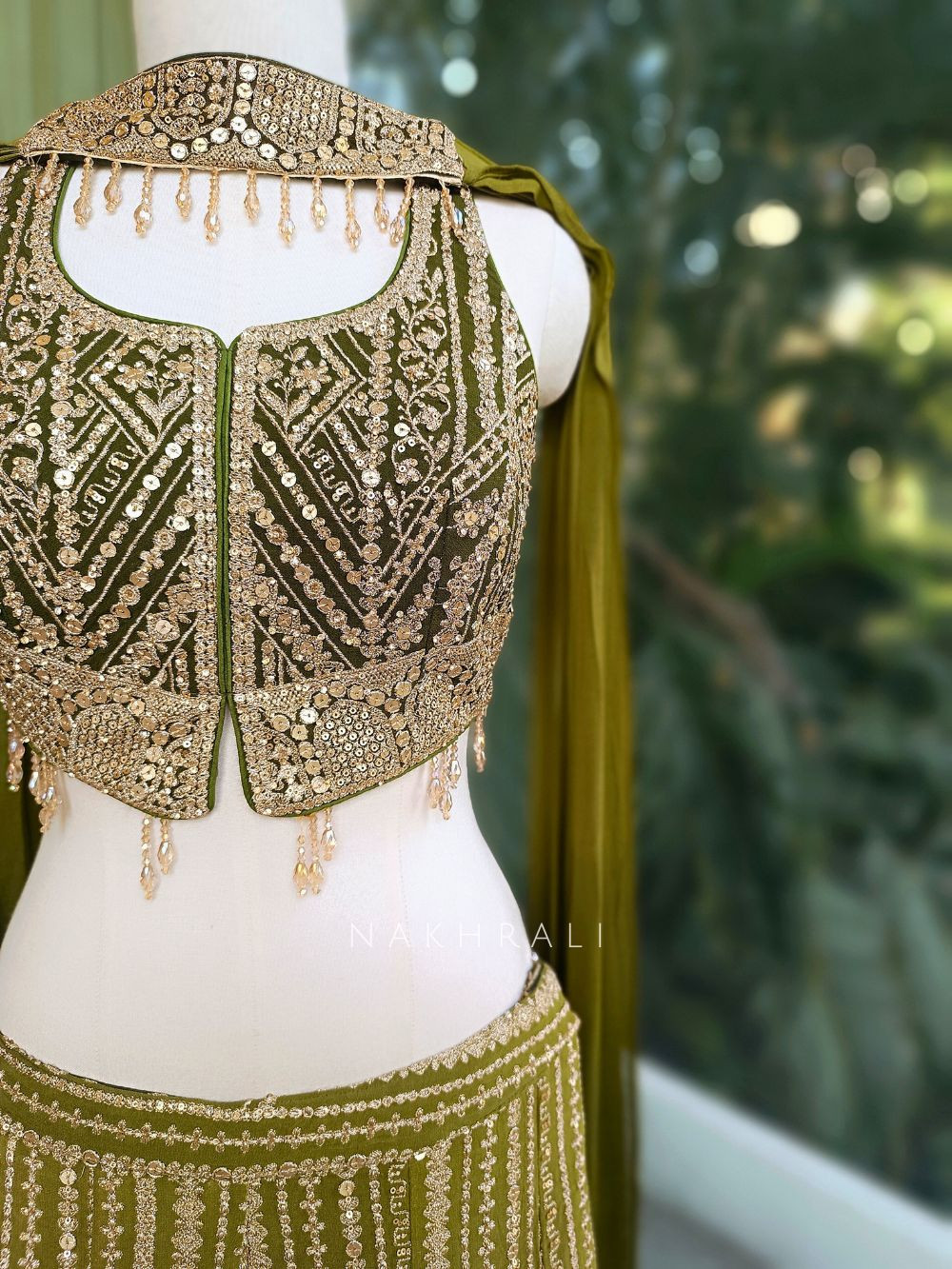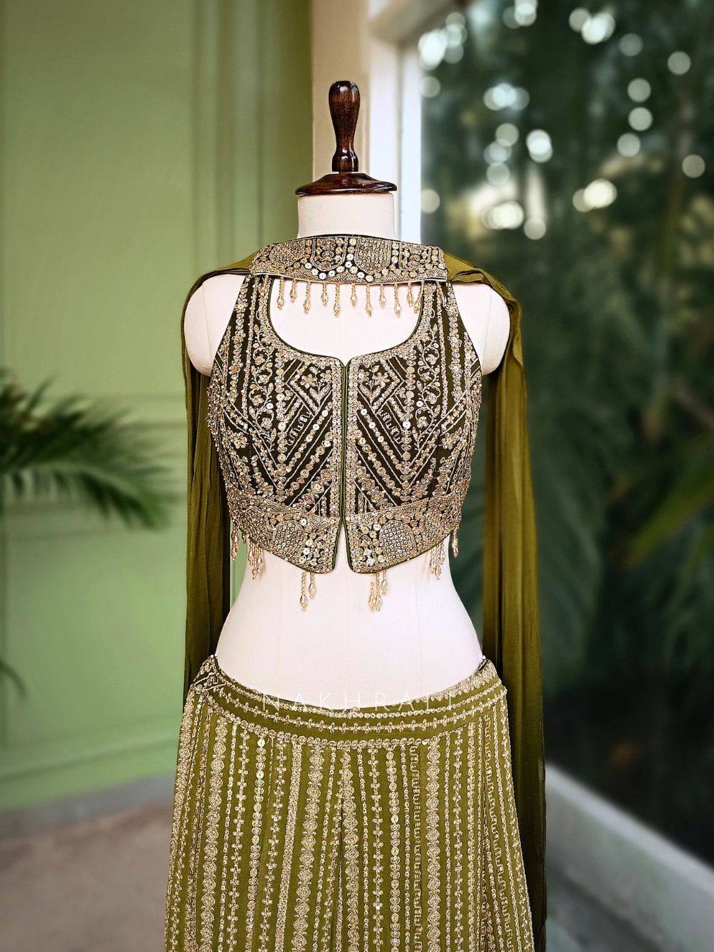 Serenya Green Sequin Palazzo Set with Choker Dupatta