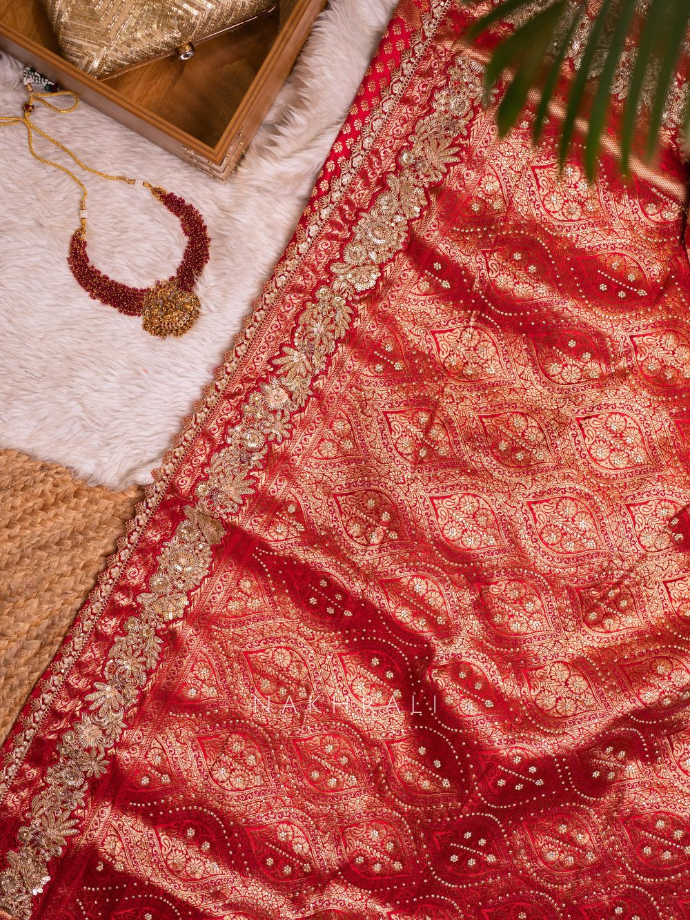 Shringaar Red Brocade Silk Saree with Zari and Sequin Work