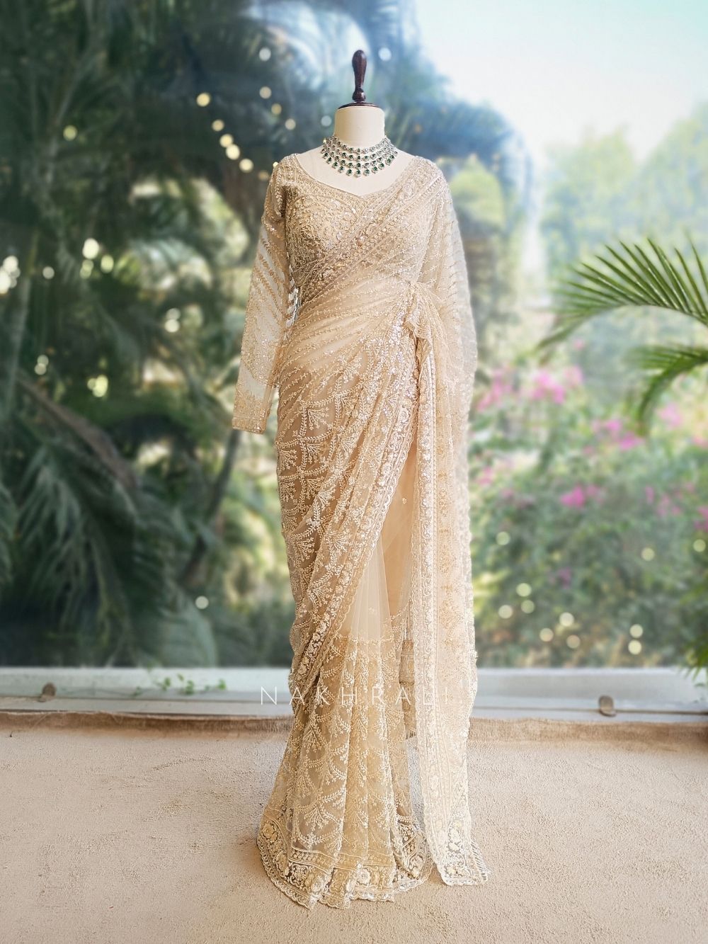 Pair with pearl chandbalis and golden heels for a graceful festive look.