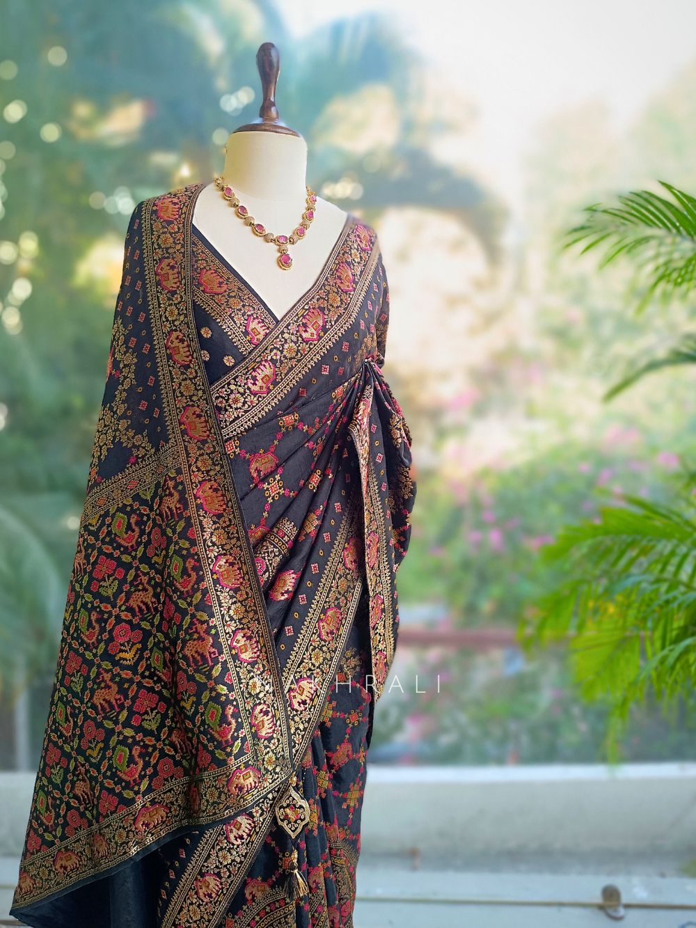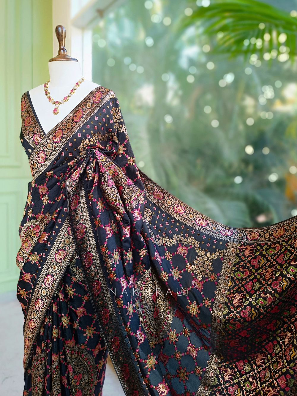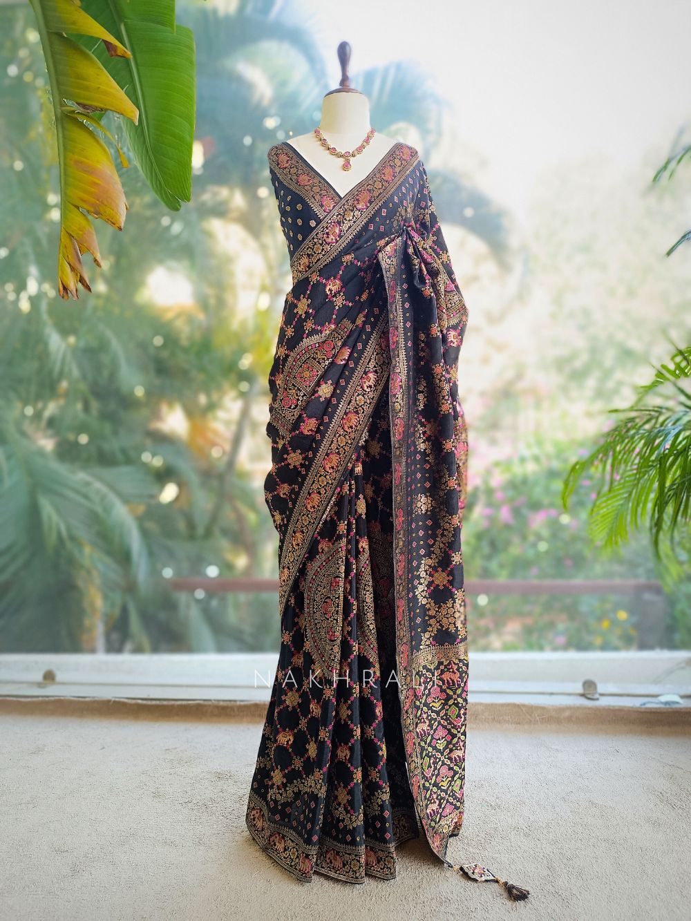 • Cultural Celebrations: Style with a statement necklace and embroidered blouse design for a regal traditional appearance.