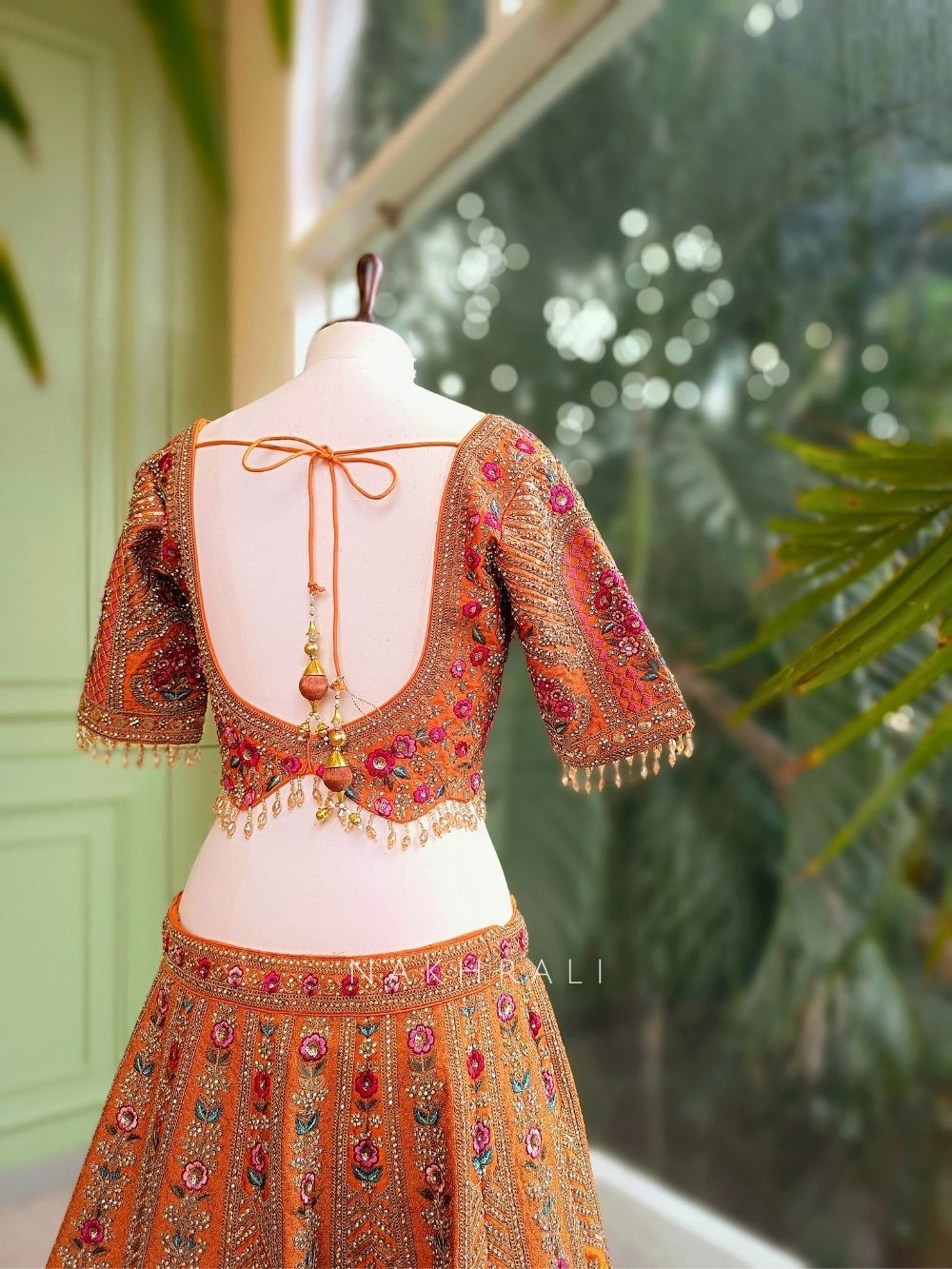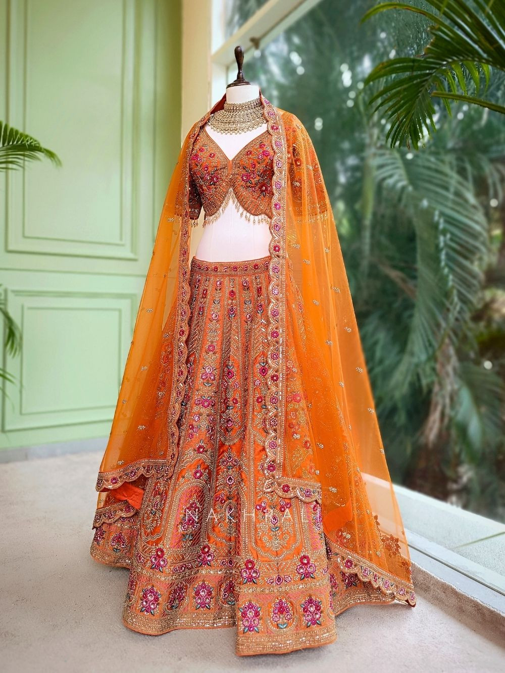 Suhira Tangerine Embroidered Lehenga with Sequin and Stone Work