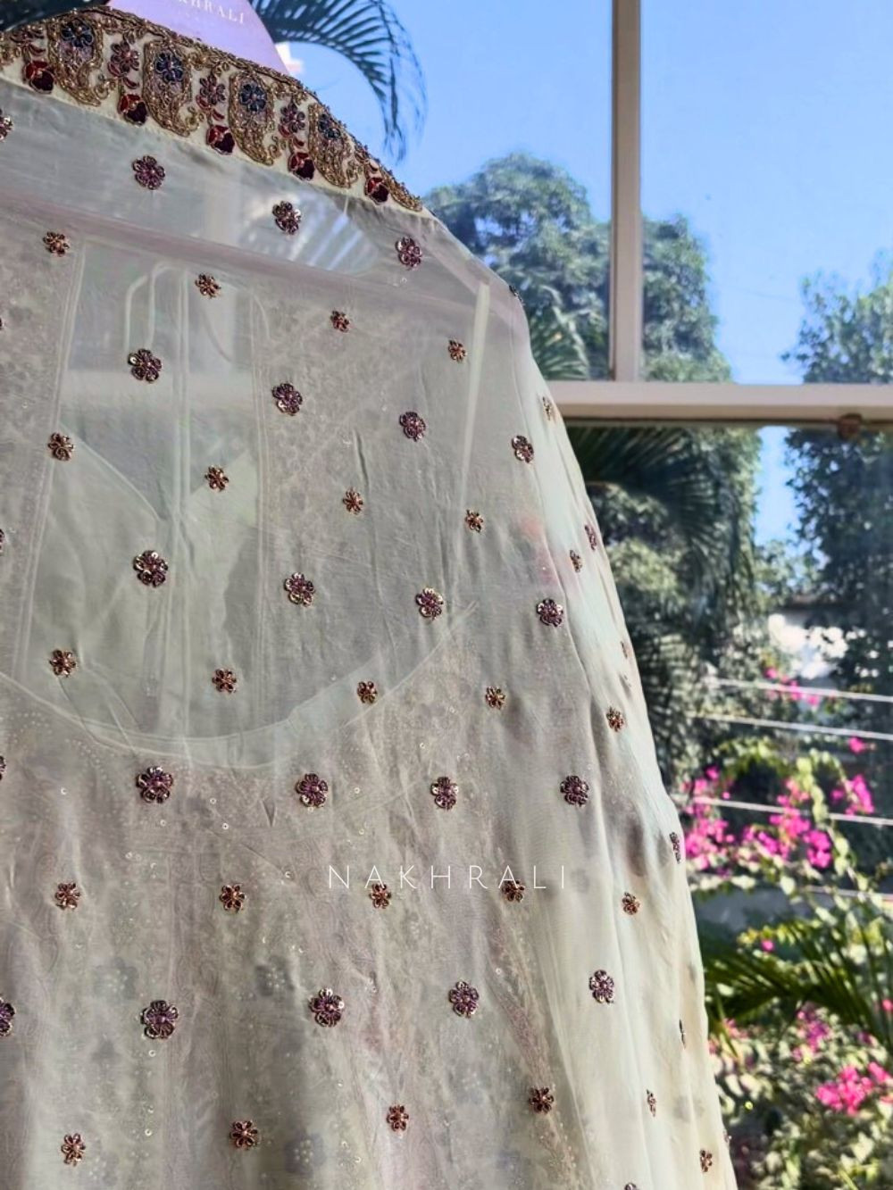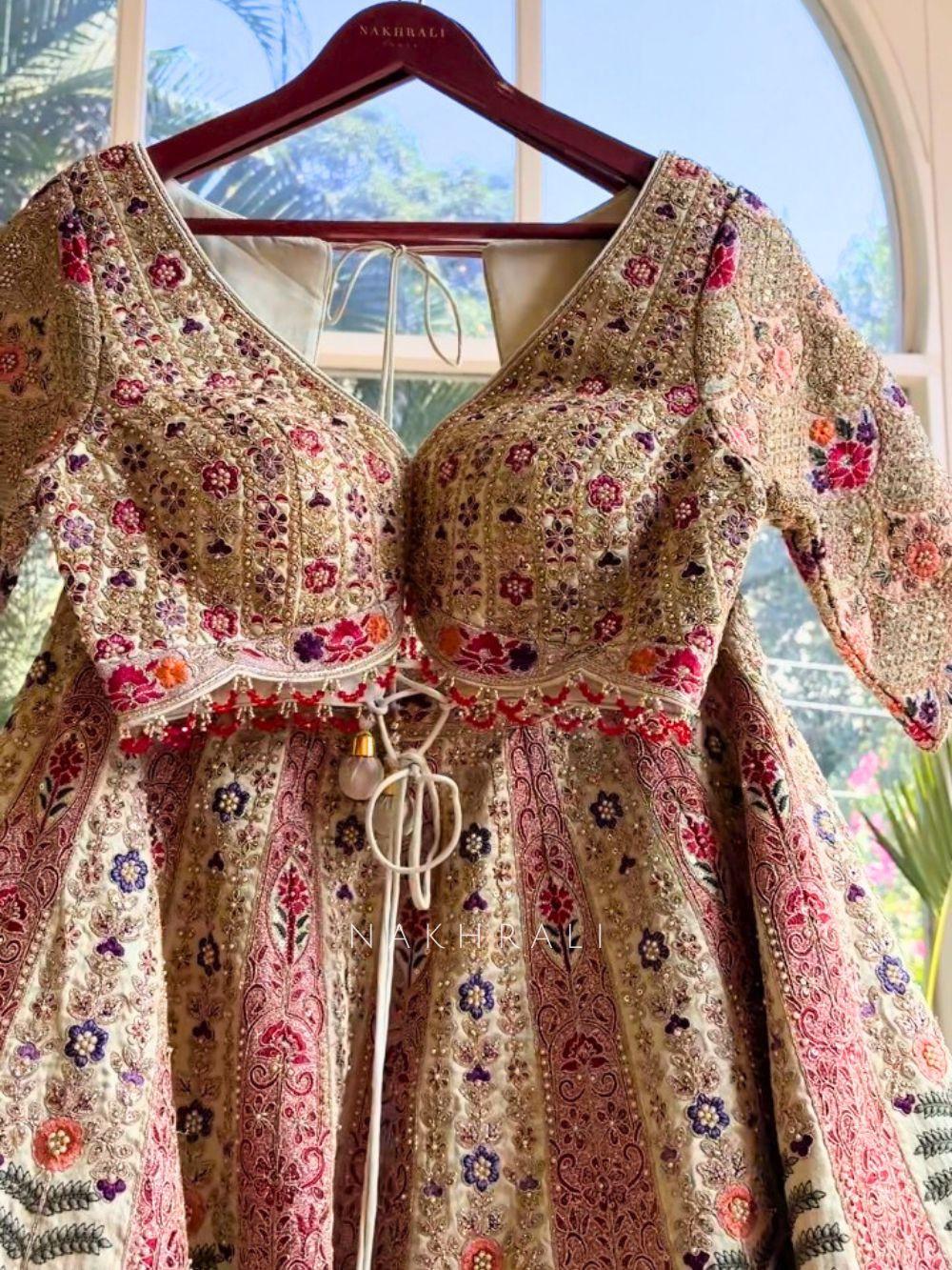 Wedding Ceremony: Opt for layered kundan jewellery and soft glam makeup to amplify the regal embroidery.